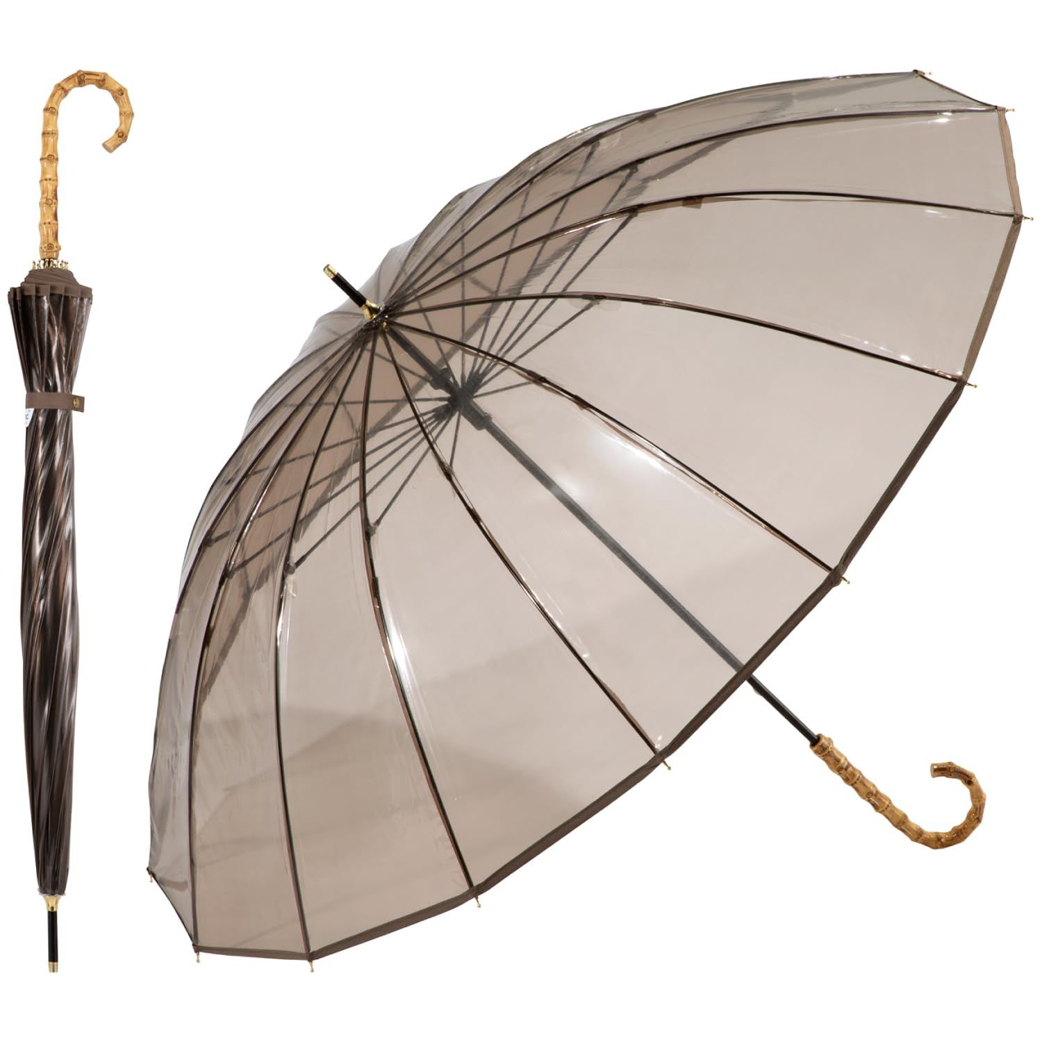 バンブー 16本骨 持ち手 丈夫 レディース おしゃれ 大きい 映え 親骨60cm シンプル 長傘 可愛い ブラウン 通勤 16Kプラスティックパイピング 通学 [ビニール傘] 女性 雨傘 PT-054-001 Wpc.