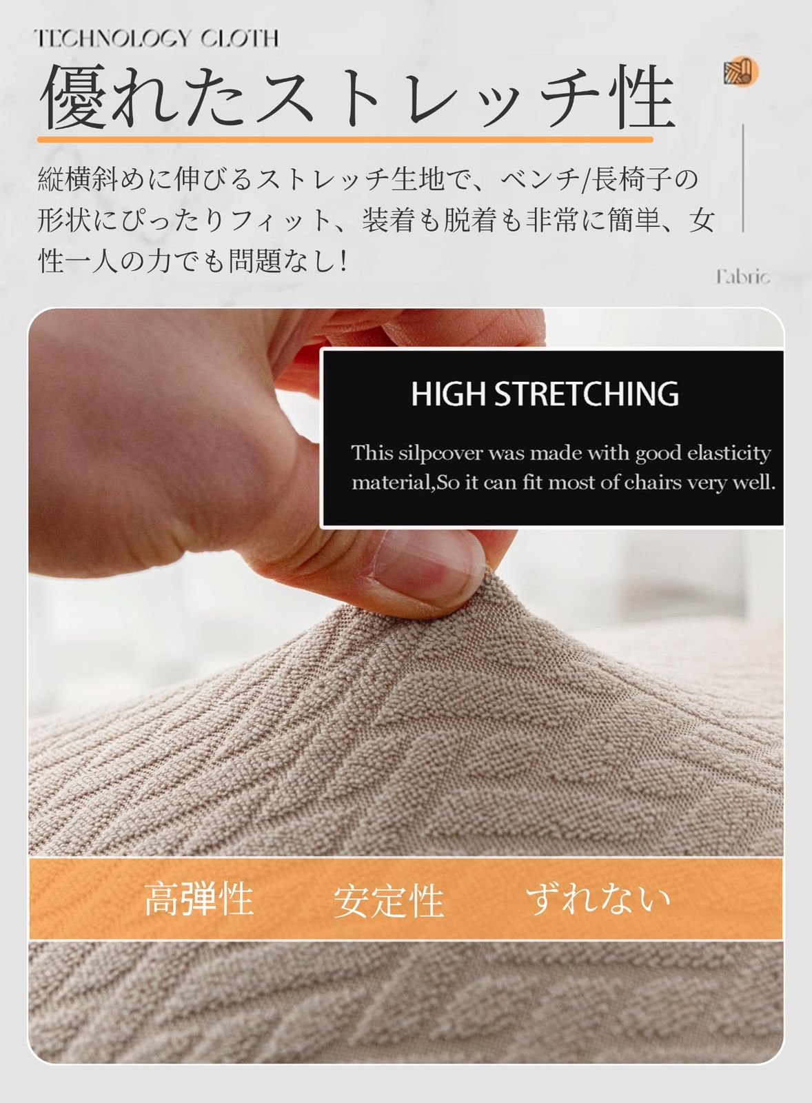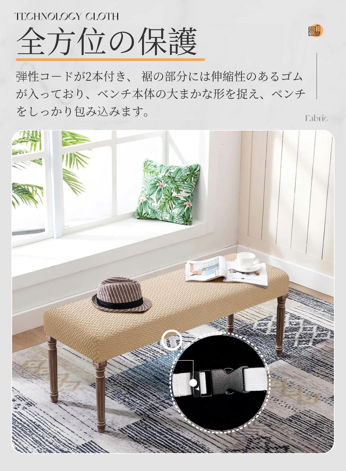 フィット 撥水 取り付け簡単 スリップカバー ジャガード織り 傷防止 ダイニングベンチカバー 汚れ防止 伸縮素材 長椅子カバー ストレッチ 洗える 長座面チェアカバー ベンチシートカバー イスカバー 家庭 KOOK」ベンチカバー ホテル レストラン 「JUNA