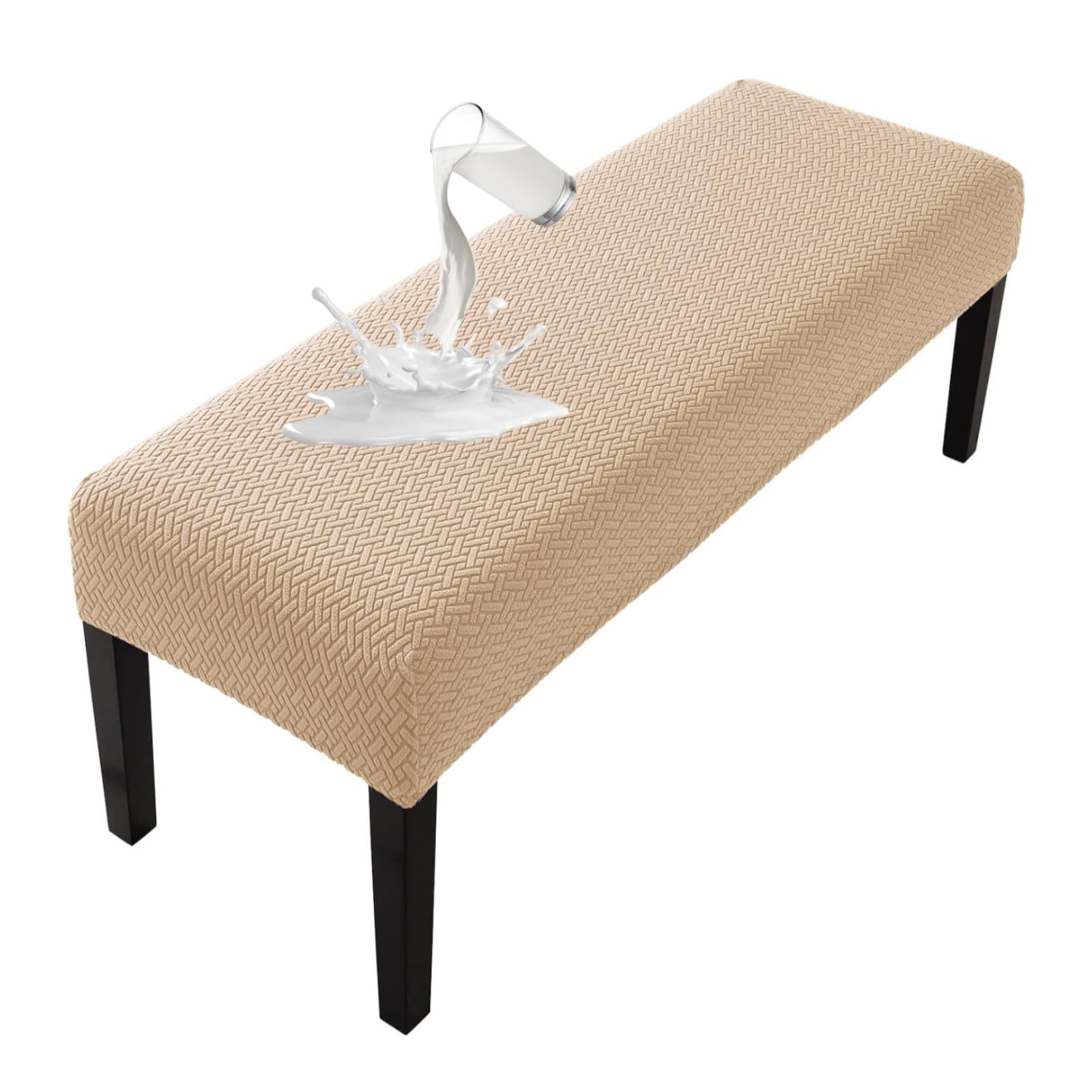 「JUNA KOOK」ベンチカバー ベンチシートカバー 長椅子カバー ダイニングベンチカバー スリップカバー フィット 撥水 取り付け簡単 ジャガード織り 傷防止 汚れ防止 伸縮素材 ストレッチ 洗える 長座面チェアカバー イスカバー 家庭 ホテル レストラン (カーキ, (幅110-120cm))