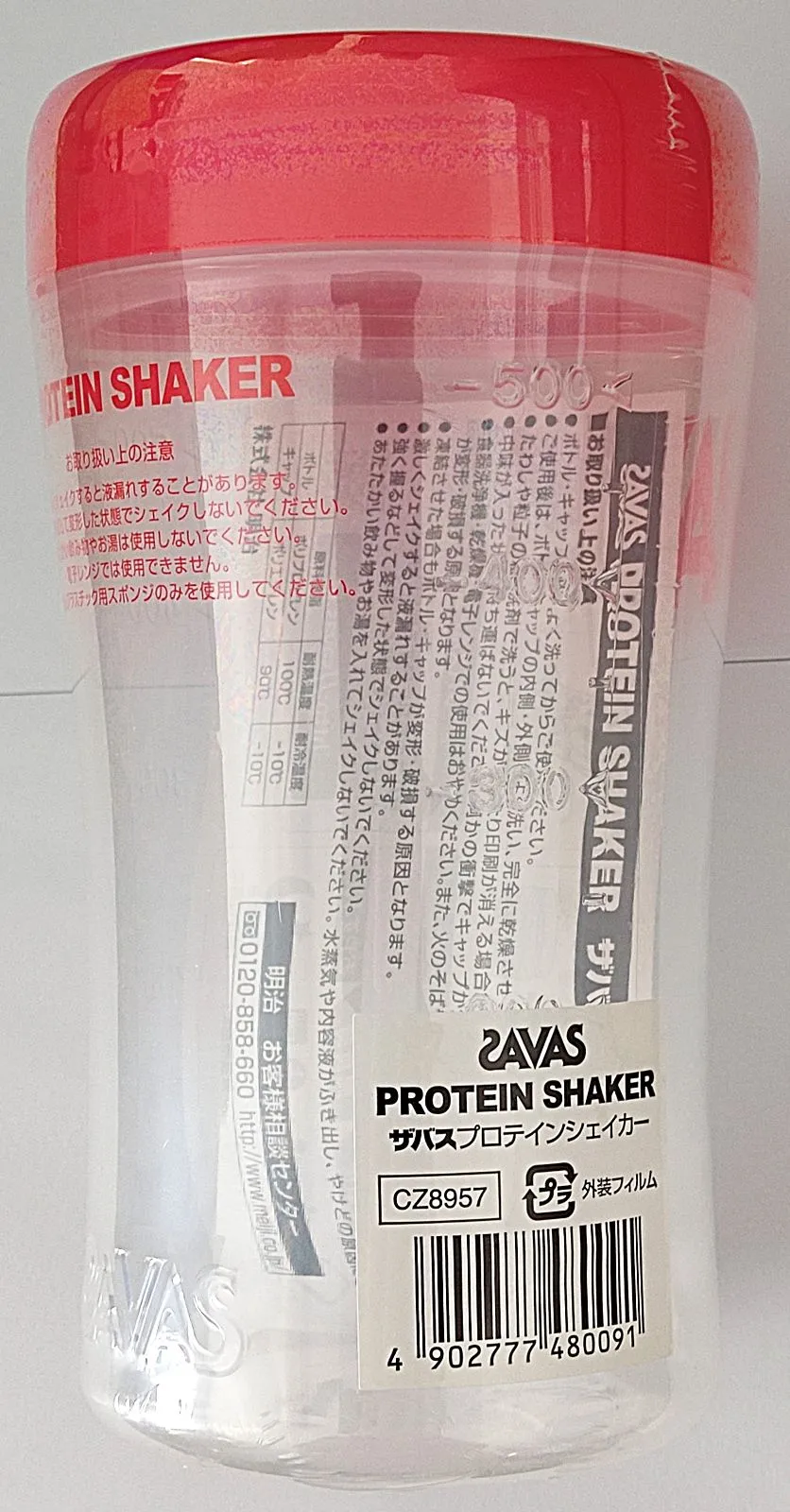 SAVAS ザバス プロテイン シェイカー 500ml クリア レッド 赤 ZAVAS