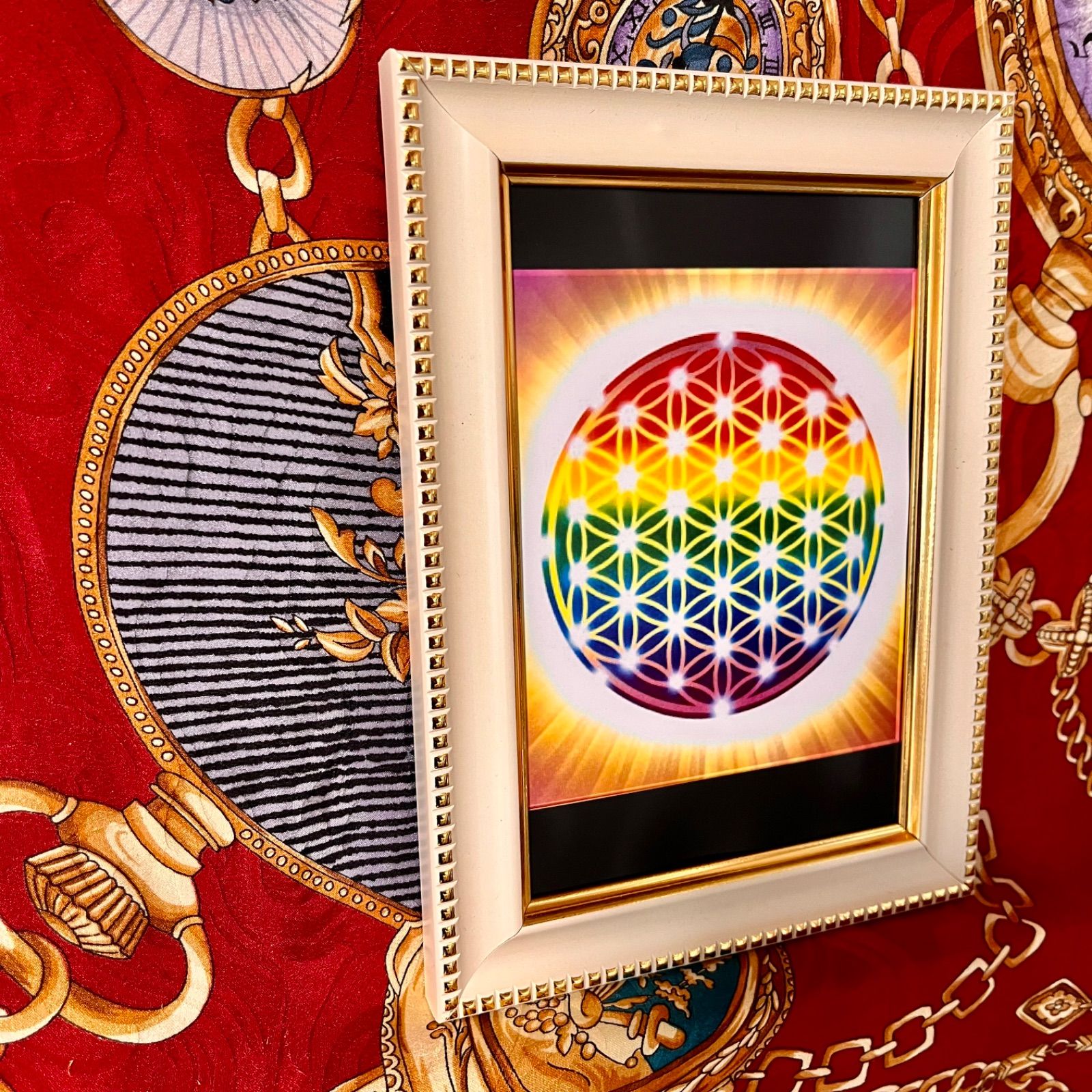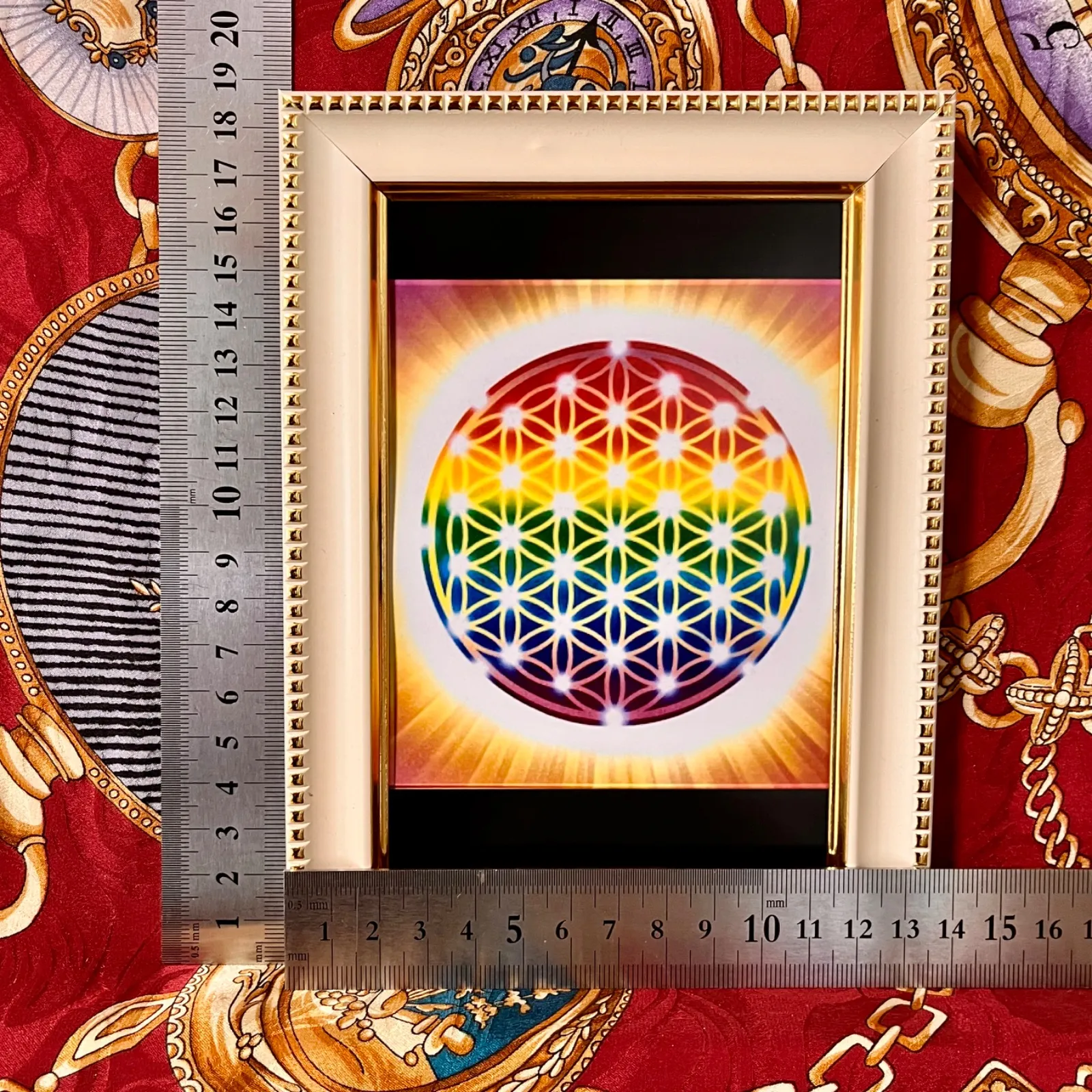 強力波動チャクラカラーフラワーオブライフ⭐︎ポストカード⭐︎神聖幾何学模様 開運エナジーアートスピリチュアルアート ヒーリング効果ヨガ瞑想高波動