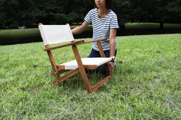 天然木(アカシア)の折りたたみ式アウトドアチェア(ガーデンチェア)「W56.5×D58×H62×SH24cm/折りたたみ時:W56.5×D12.5×H74cm」No.511