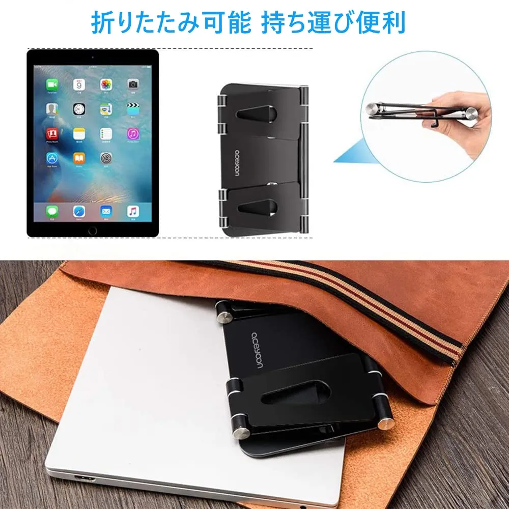 aceyoon タブレット スタンド 折りたたみ式 for iPhone スマホスタンド 卓上 ホルダー 角度調整可能 for iPad タブレットホルダー アルミ製 携帯スタンド 滑り止め 高級 軽量 4~13インチ スマホホルダー 2台 携帯 for Kindle for Surface for Nintendo Switch機種に対応 Tablet Stand Holder