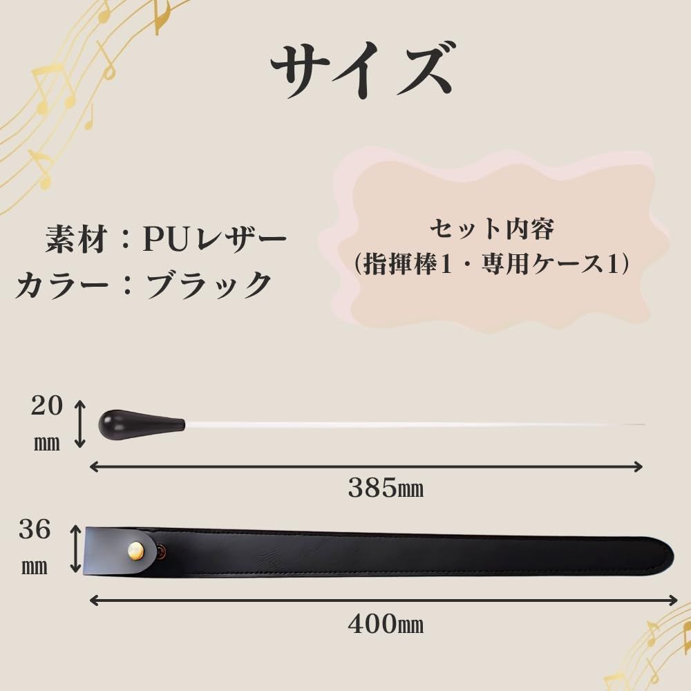 【コンパクトなサイズで収納も簡単】指揮棒サイズは385mm、ケースサイズは400mmと、バッグやリュックにも収まりやすく、移動時の携帯性に優れています。 最後までご確認頂き誠にありがとうございます。 何かご不明な点がございましたらお気軽にメッセージからお問い合わせ下さい。 上記をご確認頂き、ご購入いただけましたら幸いです。