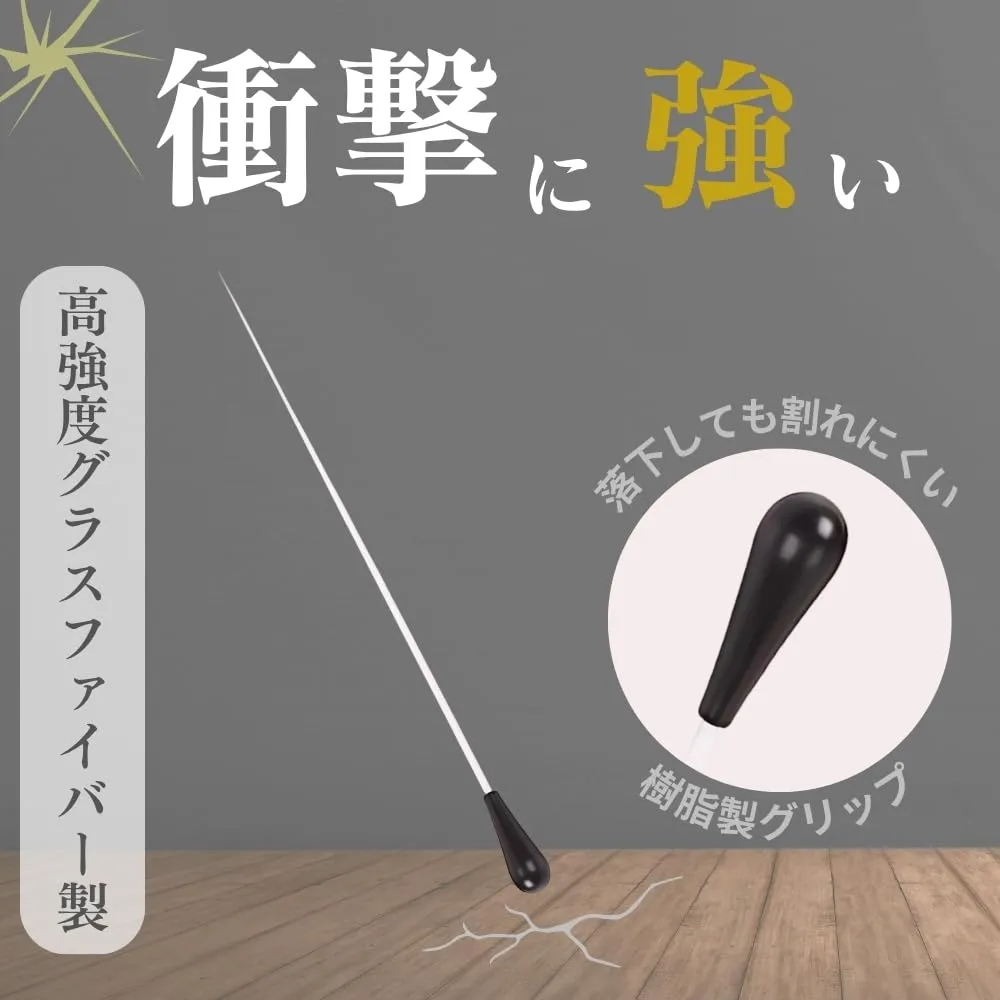 指揮棒 ケース付き タクト バトン 軽量 高強度 グラスファイバー PUレザーケース 385mm