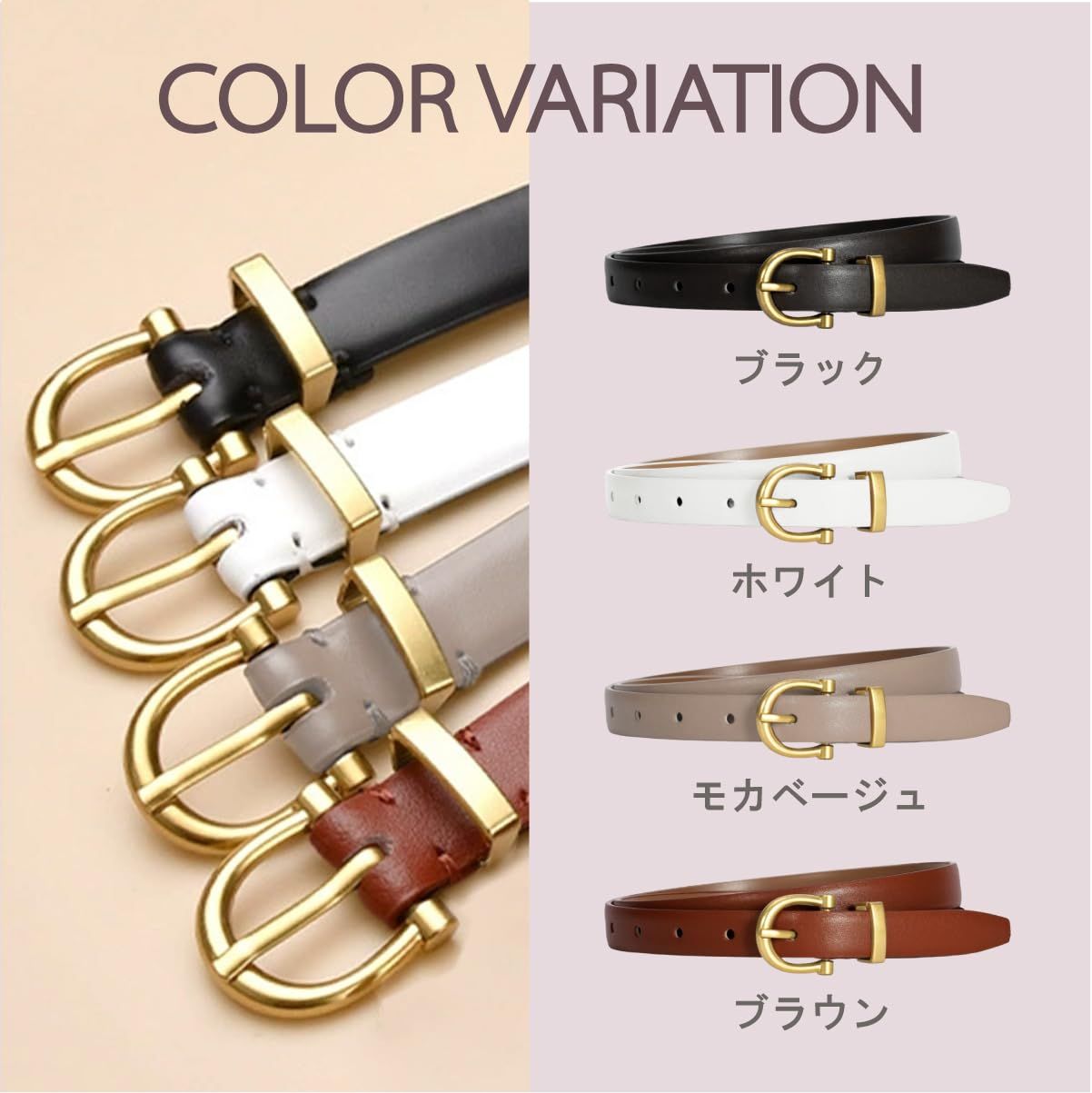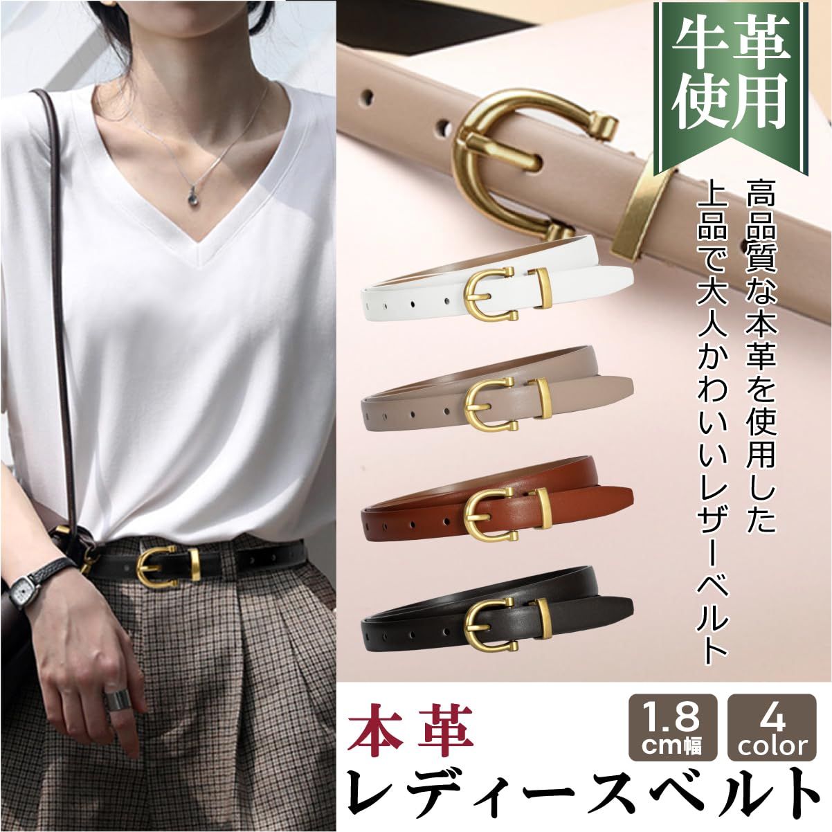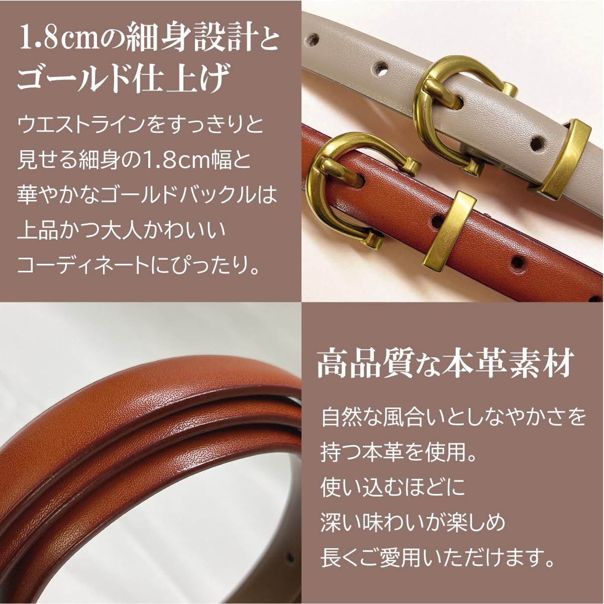 日本国内検品 全長約105cm幅1.8cm ゴールドバックル 本革レディースベルト [KASSAI]