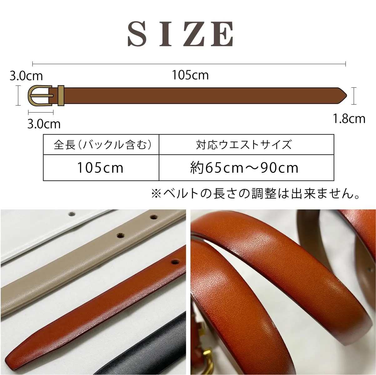 【細身1.8cm幅でスタイリッシュ】 ウエストラインをすっきりと見せる1.8cmの細身設計。デニム、スカート、ワンピースなどとも相性が良く、オン・オフ問わず活躍します。