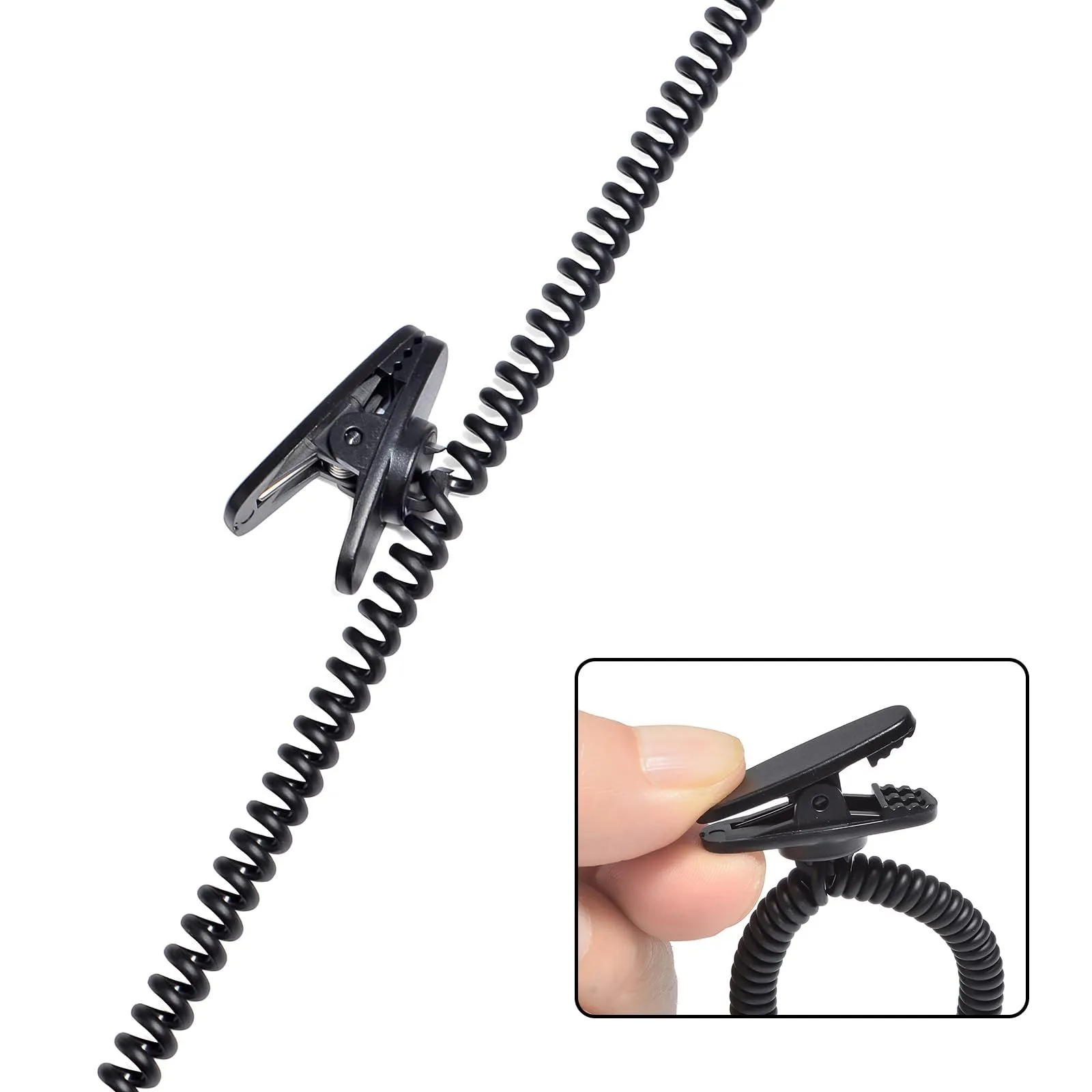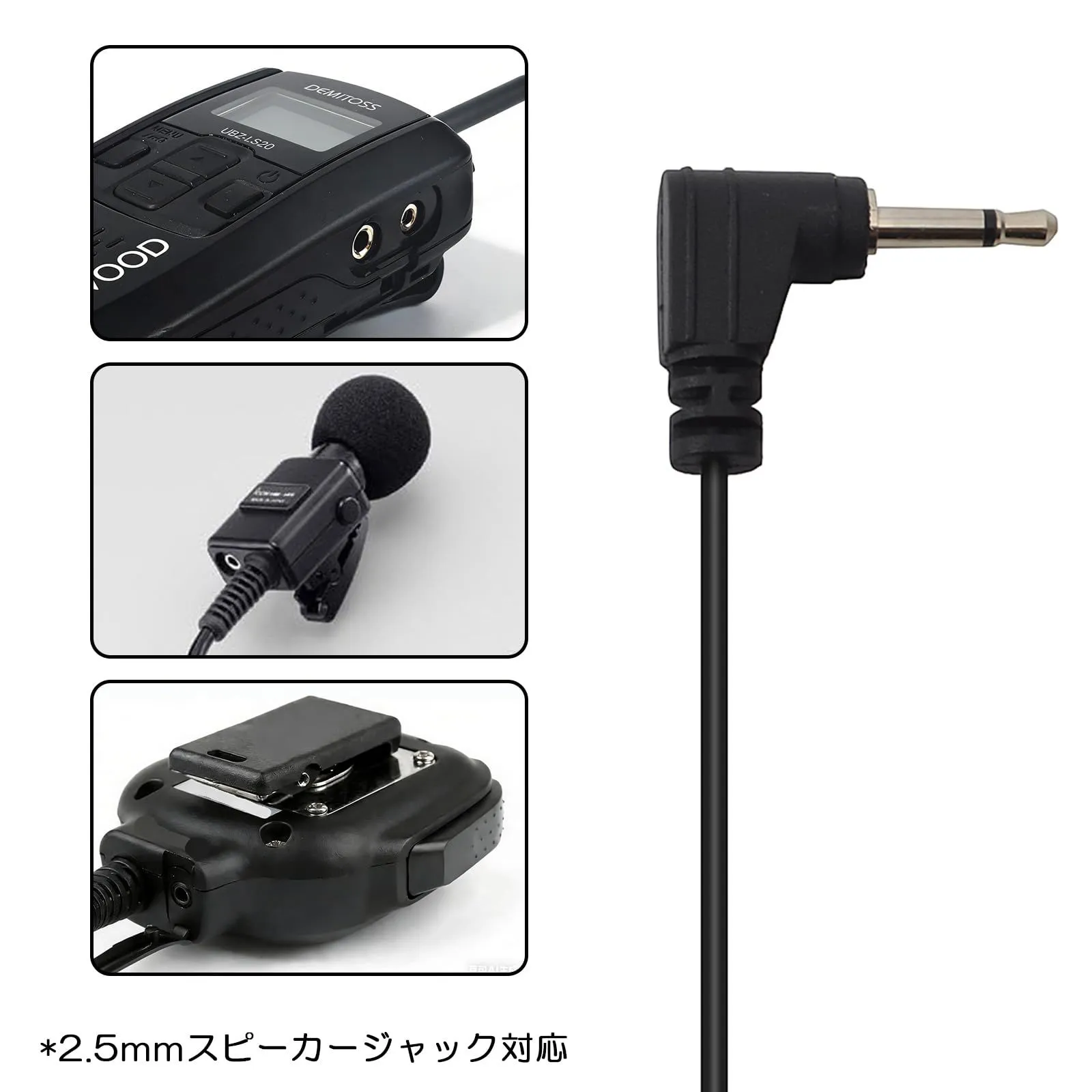 コードの一部分はカールコードを採用し、何かに引っかけてもショックを吸収して断線しにくくなっています。カールコードが伸ばさない状態での長さは約30cmと短めで、胸ポケットや肩につけるトランシバーに使うのは最適です。2.5mmイヤホンジャックを搭載するデバイスにも対応できます。