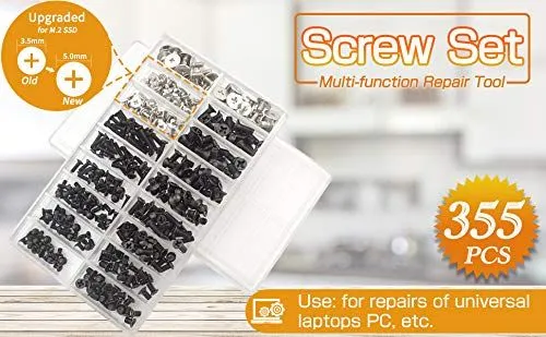 AkuolyノートPC用ネジ HDD M.2 SSD 固定用平ネジセット 収納ケース付き M2 M2.5 M3交換用ノートパソコンねじ計355本