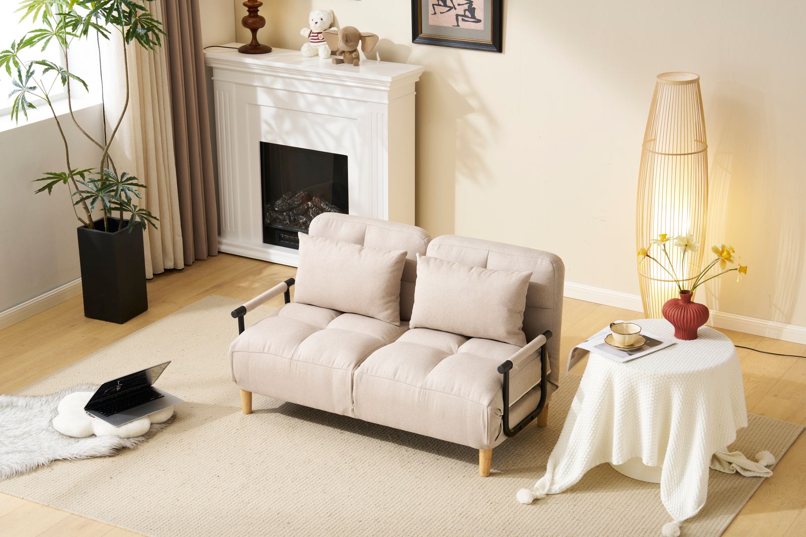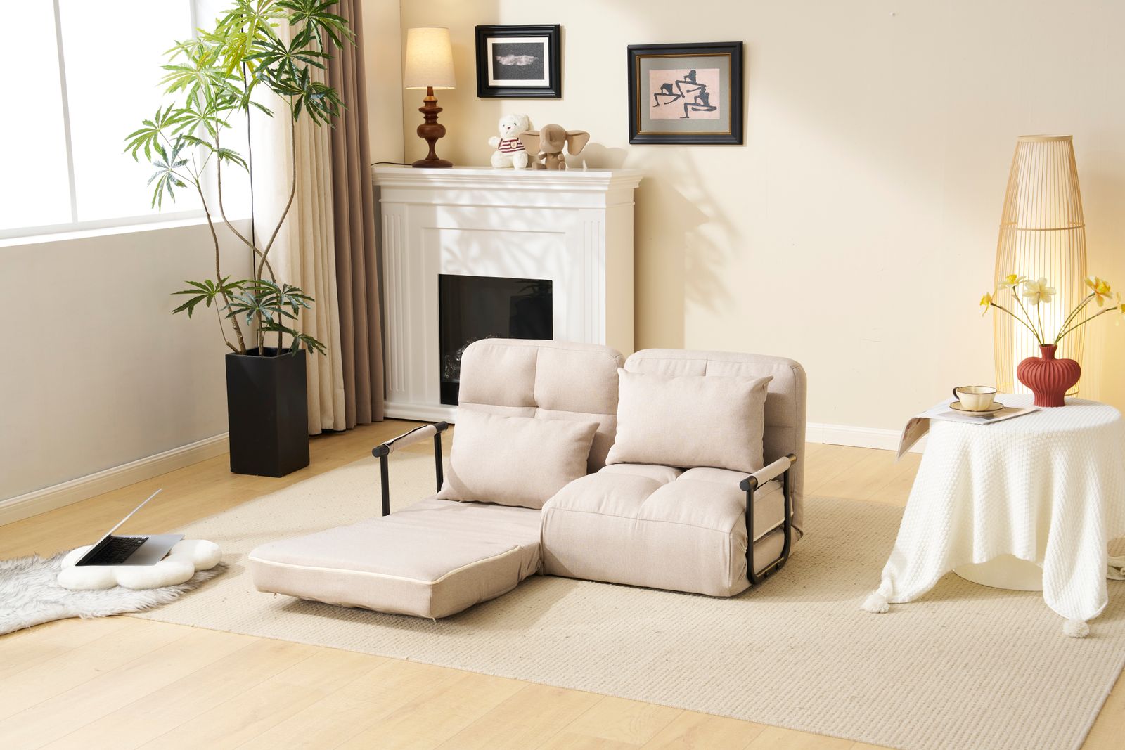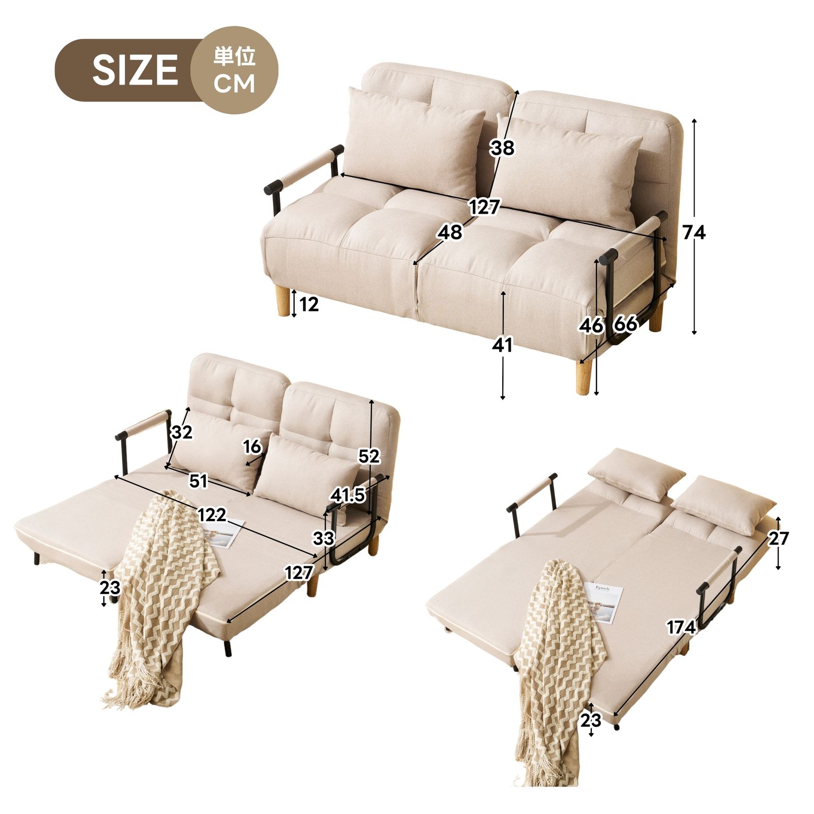 ソファベッド 折りたたみ 3WAY ファブリック生地 カウチソファー 肘付き 一人掛け 二人掛け カウチ リクライニング 一人暮らし 組立品 調節可能な背もたれ ふわふわ 6段階調節 【khaki】