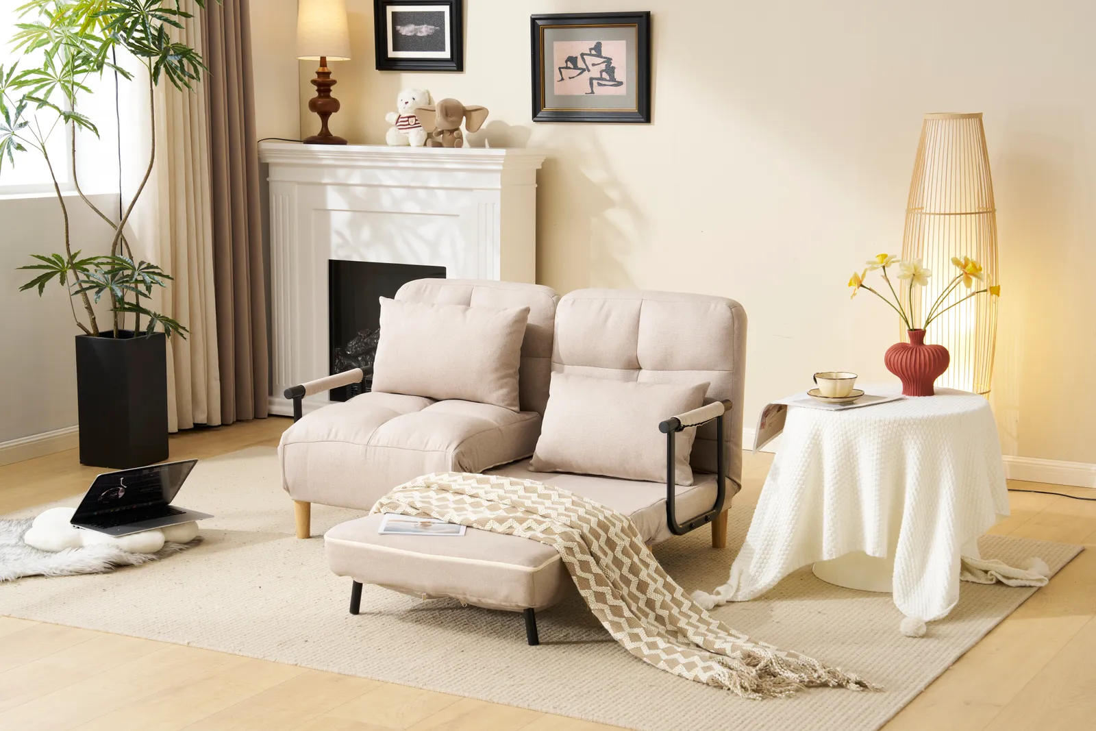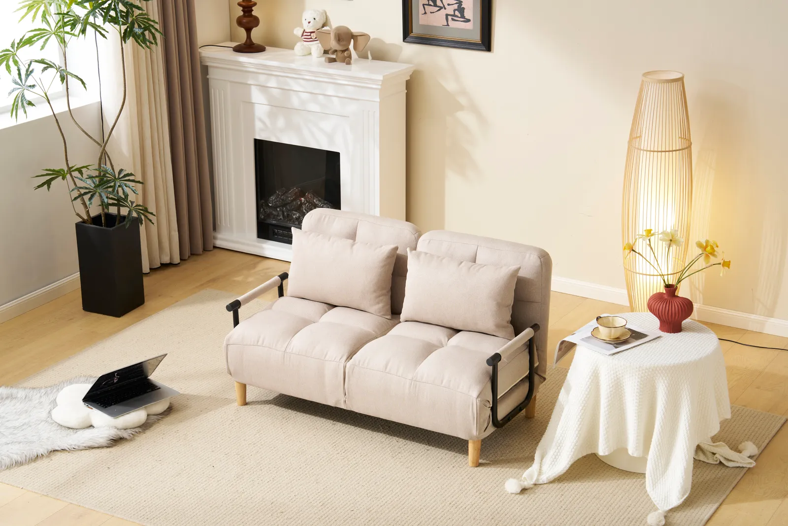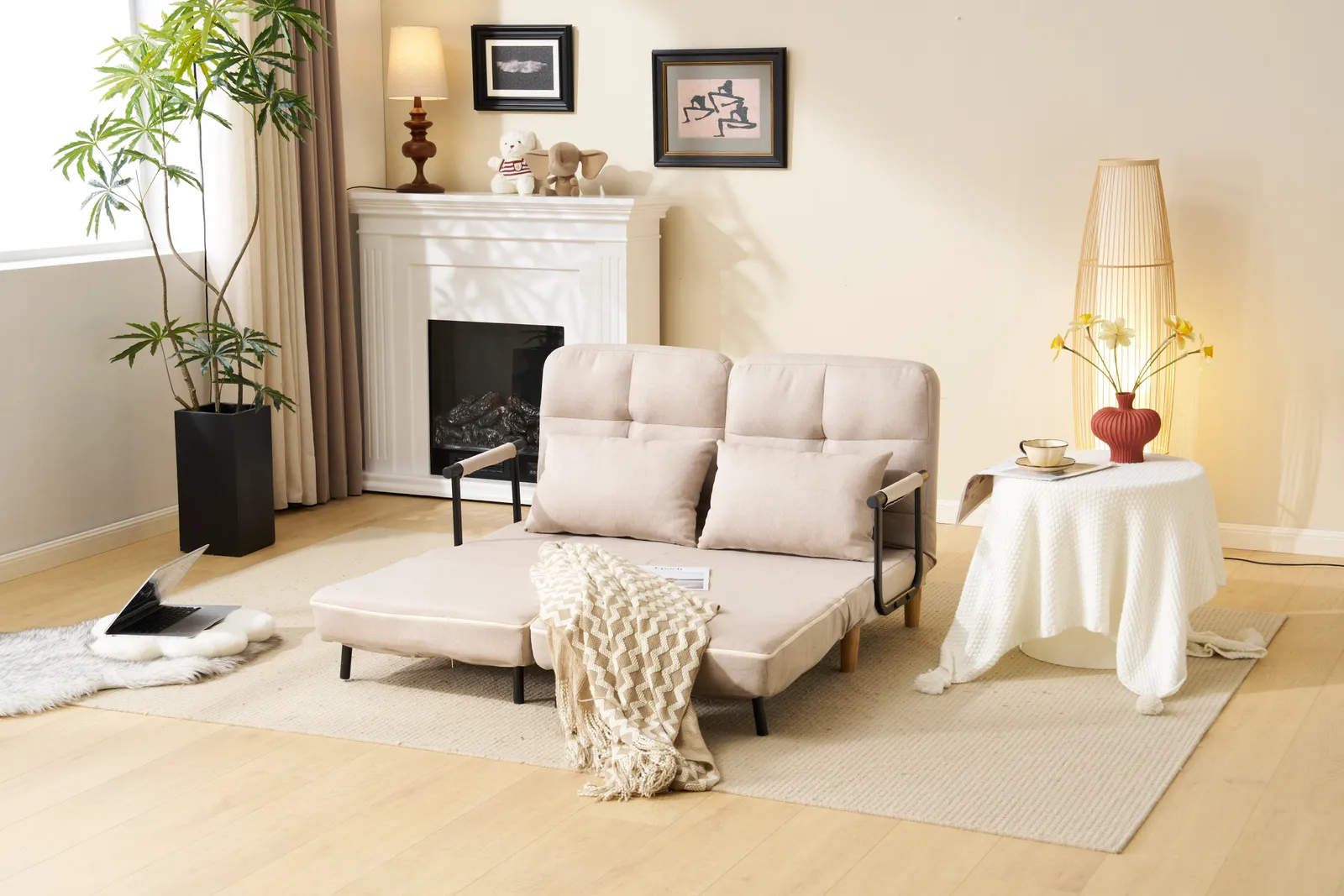 ソファベッド 折りたたみ 3WAY ファブリック生地 カウチソファー 肘付き 一人掛け 二人掛け カウチ リクライニング 一人暮らし 組立品 調節可能な背もたれ ふわふわ 6段階調節 【khaki】