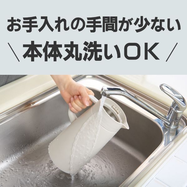 ●汚れやにおいがつきにくい「スーパークリーン加工」 毎日使うものとして清潔性とお手入れのしやすさにこだわりました。ポットの内面には、なめらかで光沢のあるスーパークリーン加工を施しました。汚れやにおいがつきにくく、さっと洗うだけで、いつも清潔にお使いいただけます。