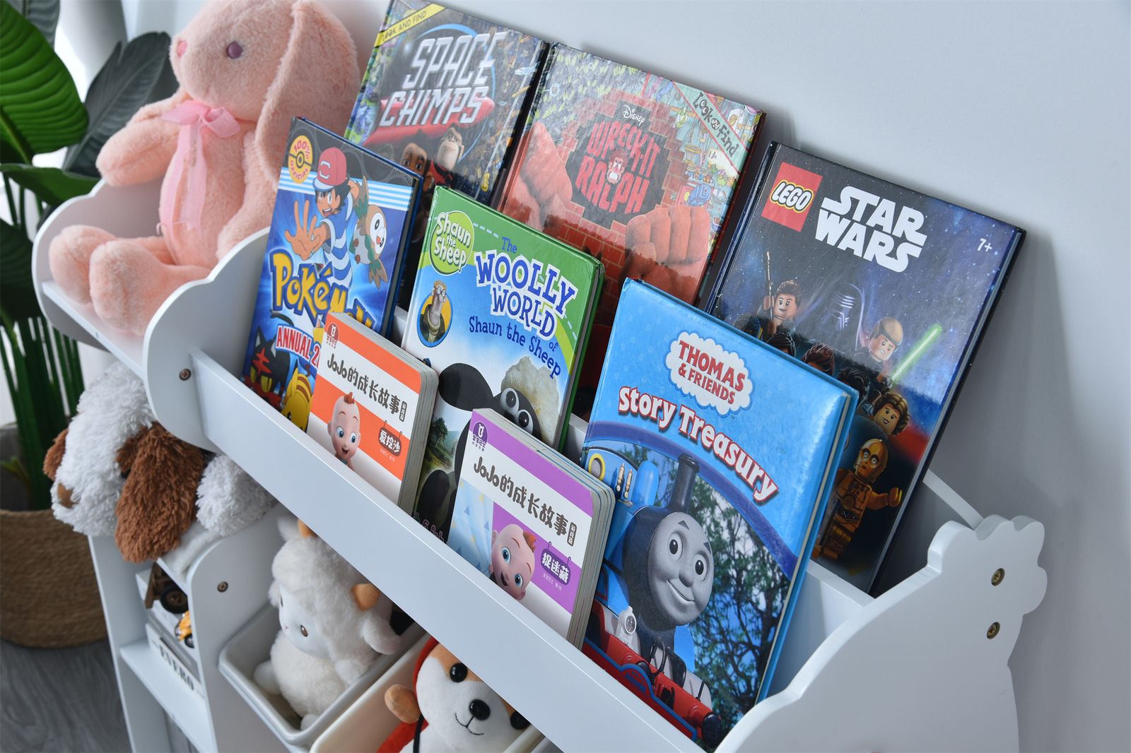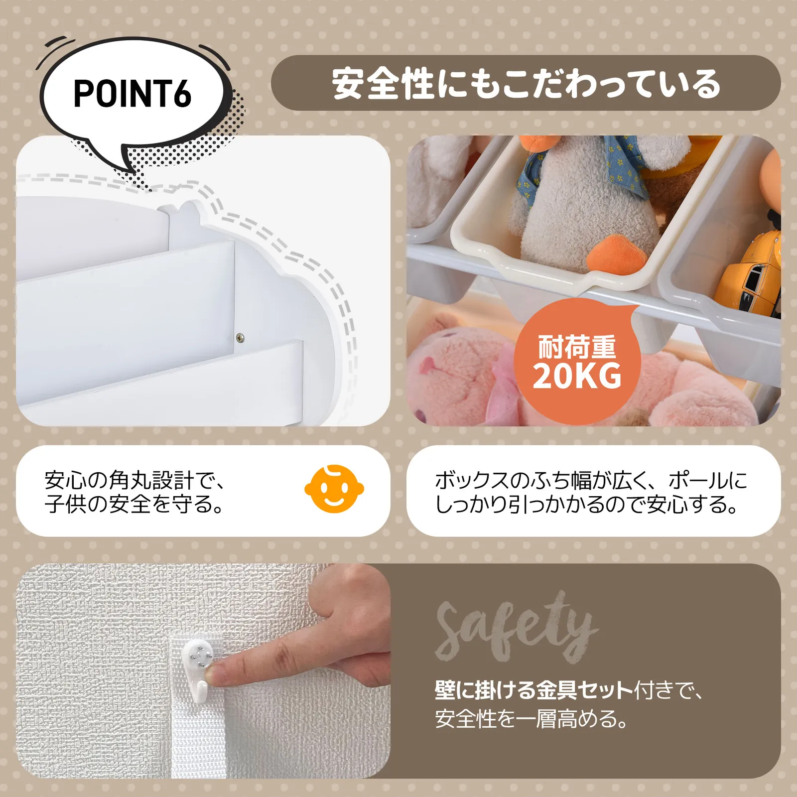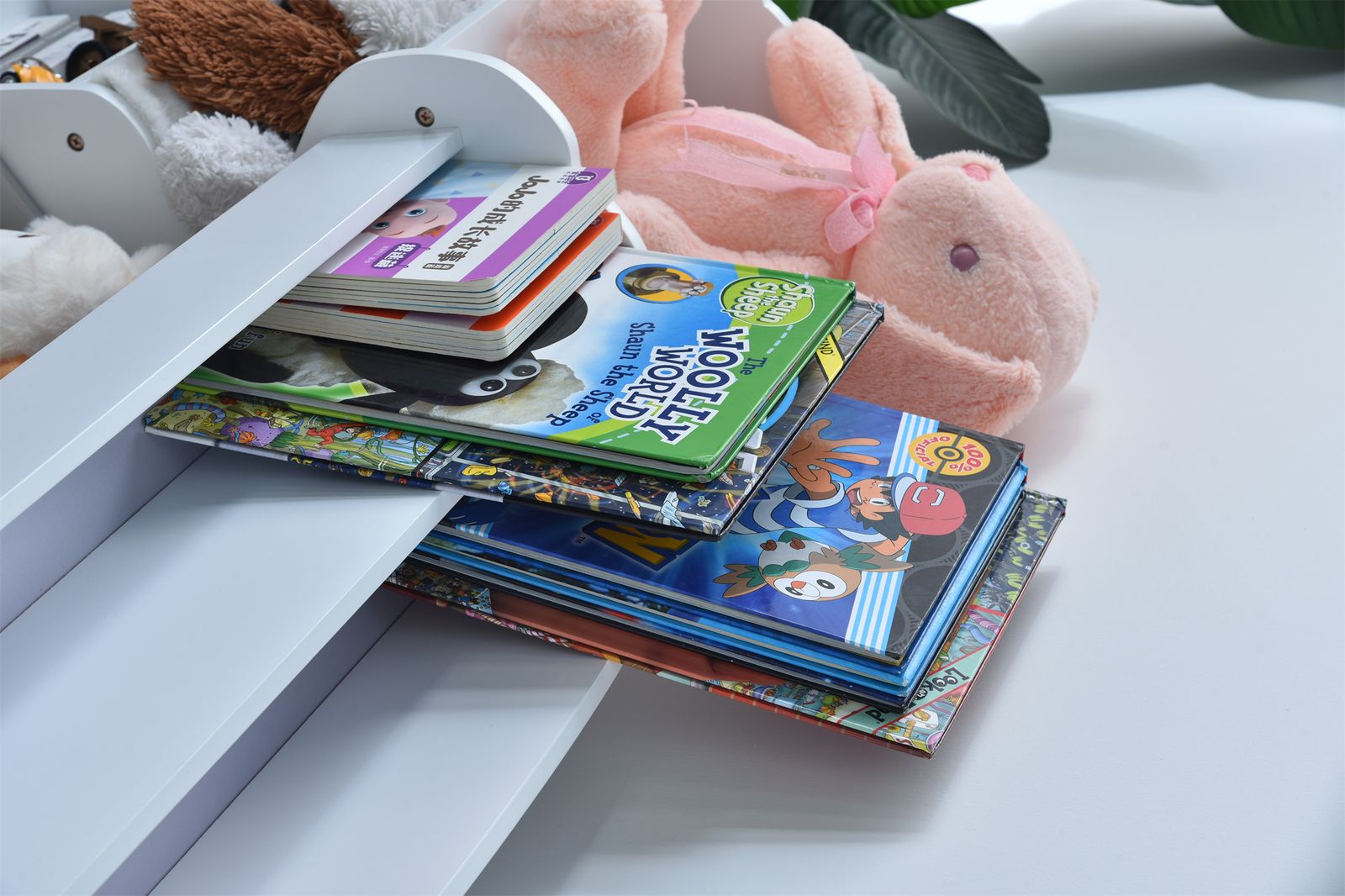 絵本ラック 絵本棚 大容量 本棚 収納ラック 多機能 おもちゃ収納 収納ボックス 子供部屋 収納ケース 子ども用 家具 木製 キッズ 【ホワイト】