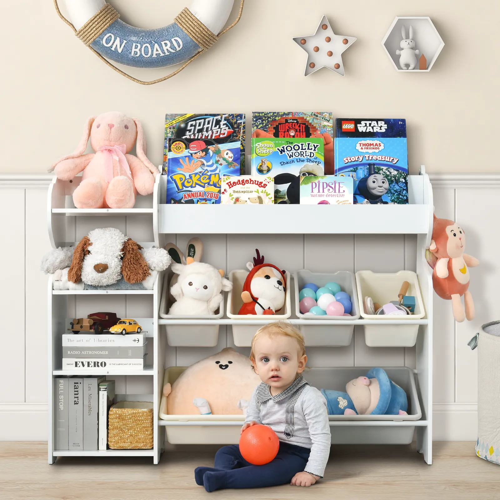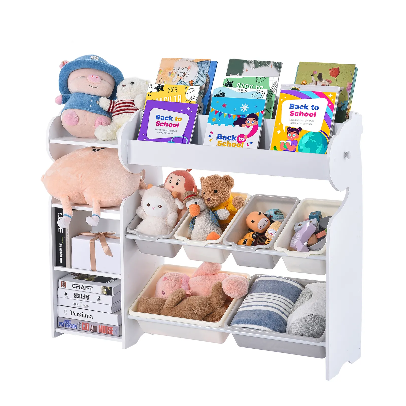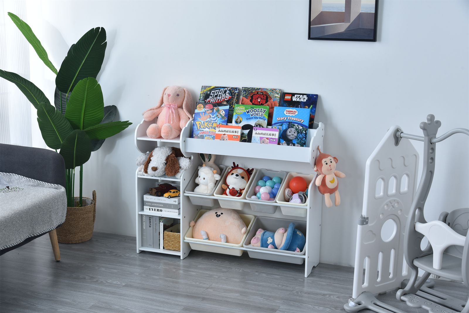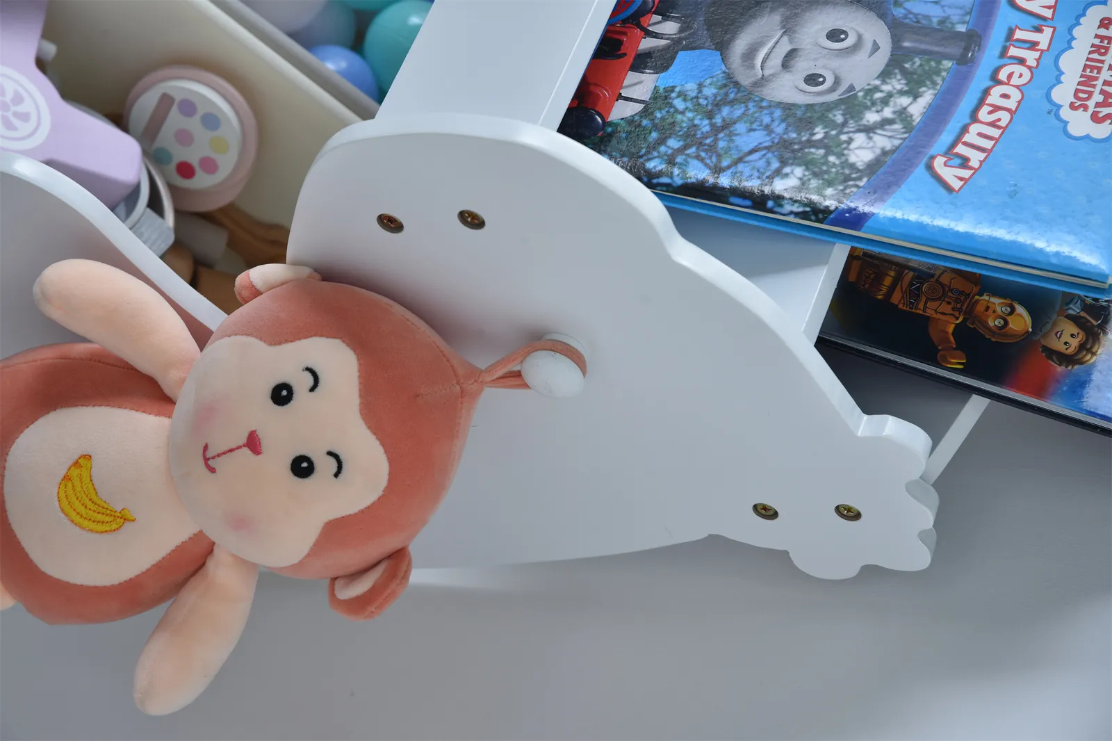 絵本ラック 絵本棚 大容量 本棚 収納ラック 多機能 おもちゃ収納 収納ボックス 子供部屋 収納ケース 子ども用 家具 木製 キッズ 【ホワイト】