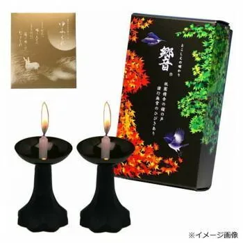 ロウが残らない特許燭台「もえ」2個と超短寸ローソク「響」をセットしたご進物です。