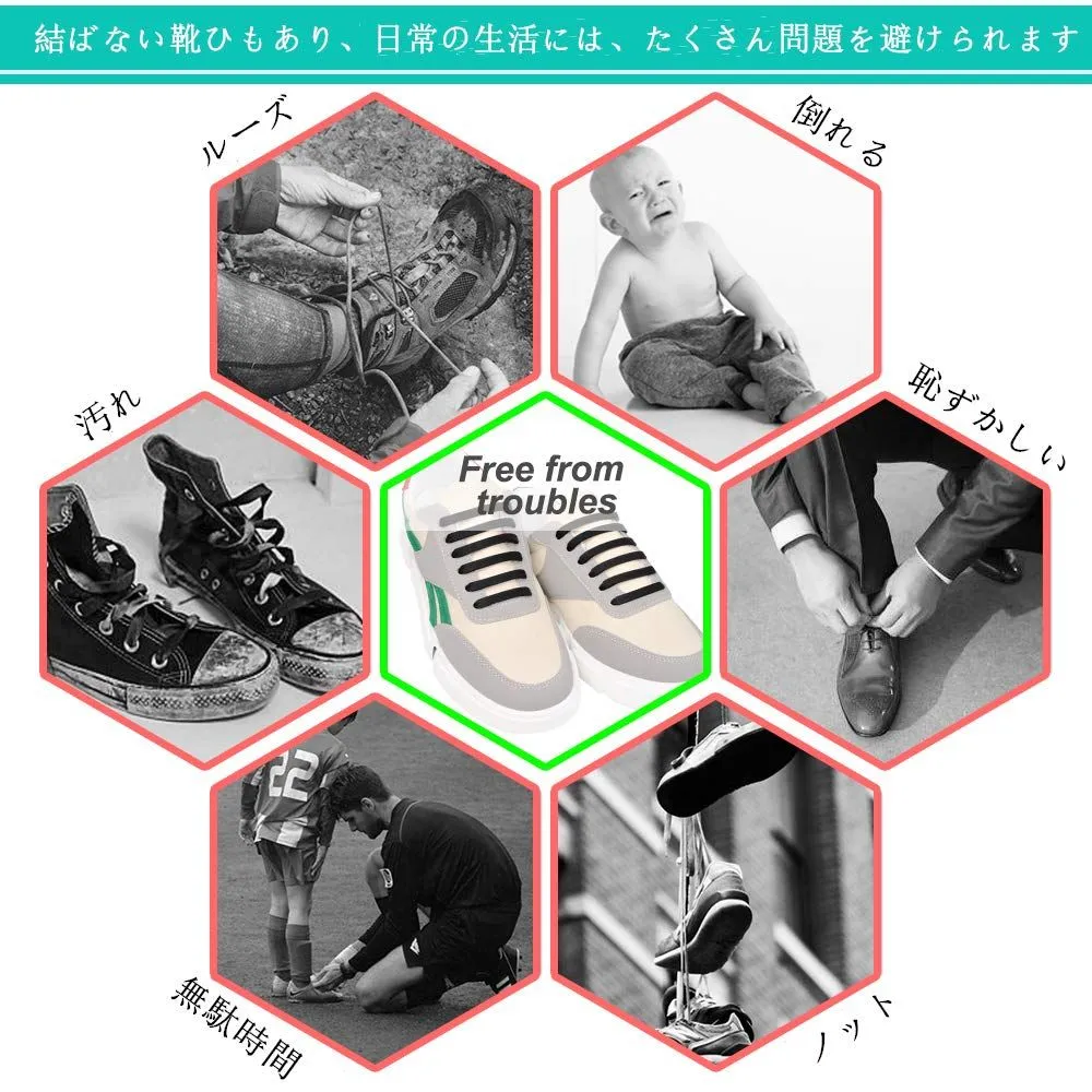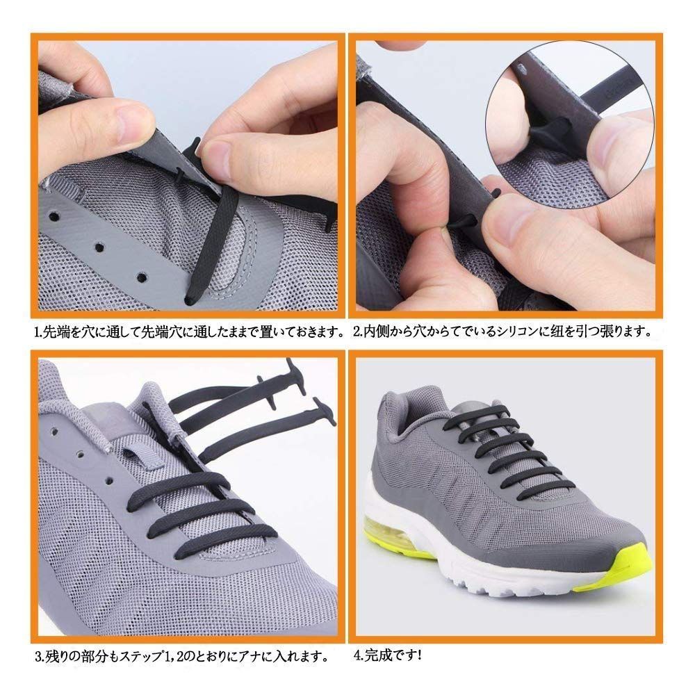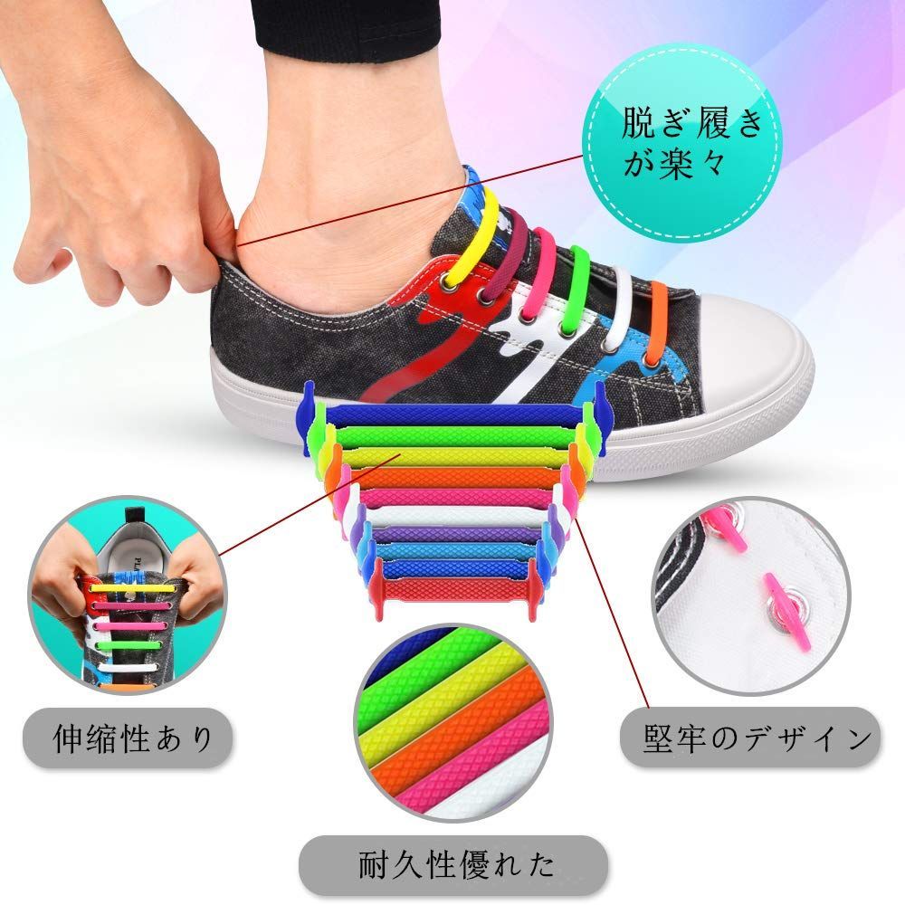?脱ぎ履きが楽々の伸縮性靴ひも。耐久性が優れたゴムを採用して、人や環境にやさしく、伸縮性もすごくいいです。伸縮型シリコンゴム製靴紐、靴紐を解けなくてすぐに脱ぎ履きが楽になります。これから靴の履きことは快適ですよ。