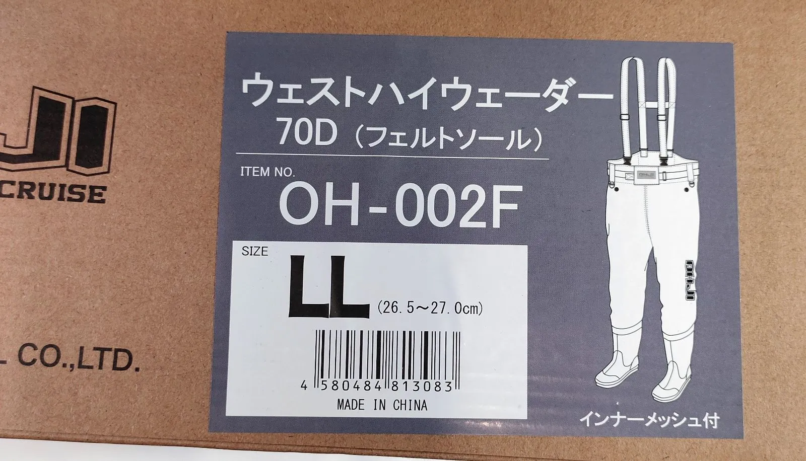エクセル ウエストハイウェダー70D (フェルトソール) OH-002F グレー LL X'SELL.