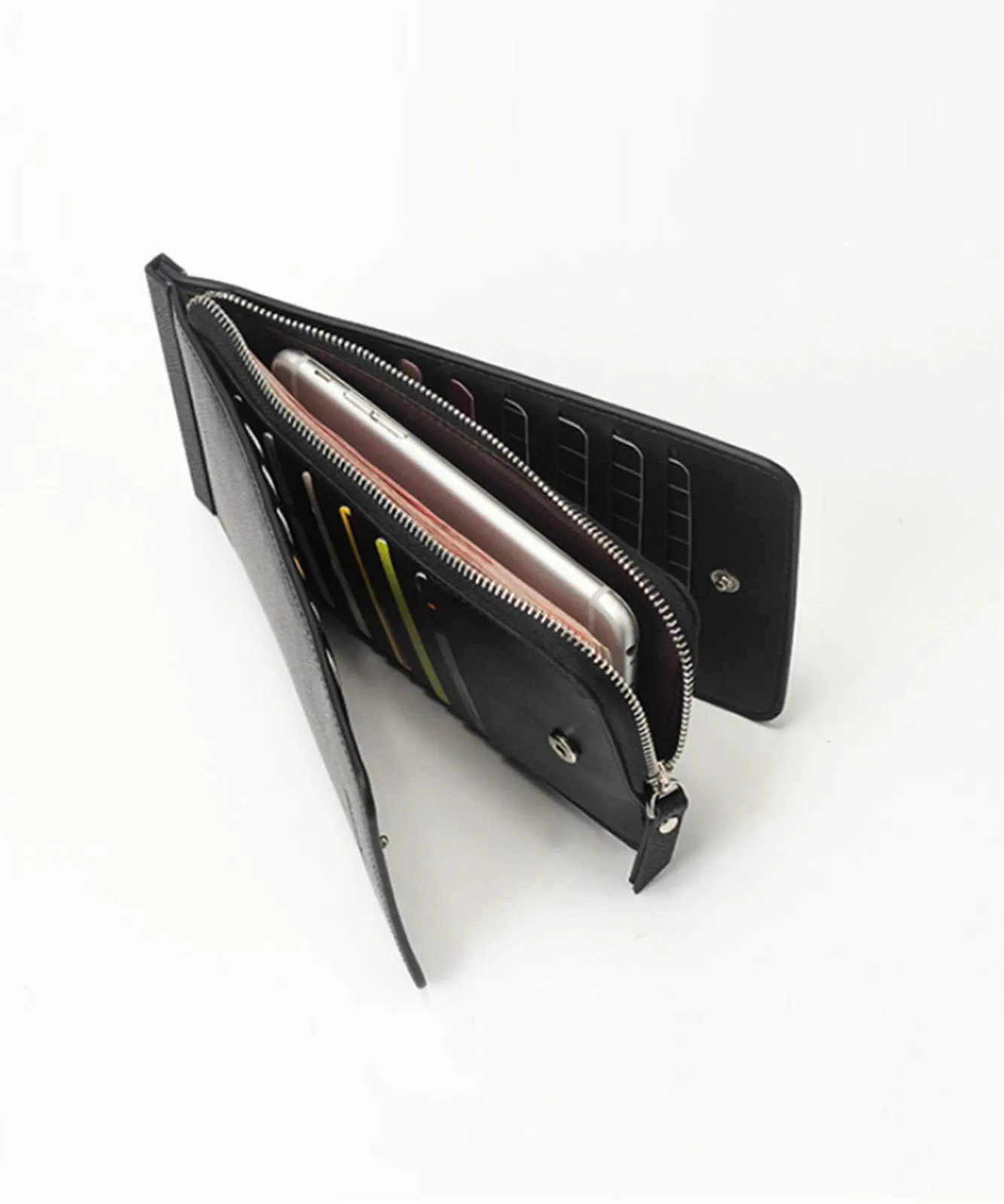[アイモハ] カードケース スリム スマホケース 大容量 薄型 ポイントカード カードホルダー 財布メンズ ビジネス 三つ折り 長財布 社会人 学生 高校生 プレゼント 母の日 お仕事 コンパクト 10×20cm 収納 カード 26枚 スマホ ファスナーポケット付き