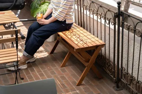天然木(アカシア)の折りたたみ式ベンチ(ガーデンチェア)「W100×D34.5×H45cm 折りたたみ時:W100×D7×H78cm」No.525