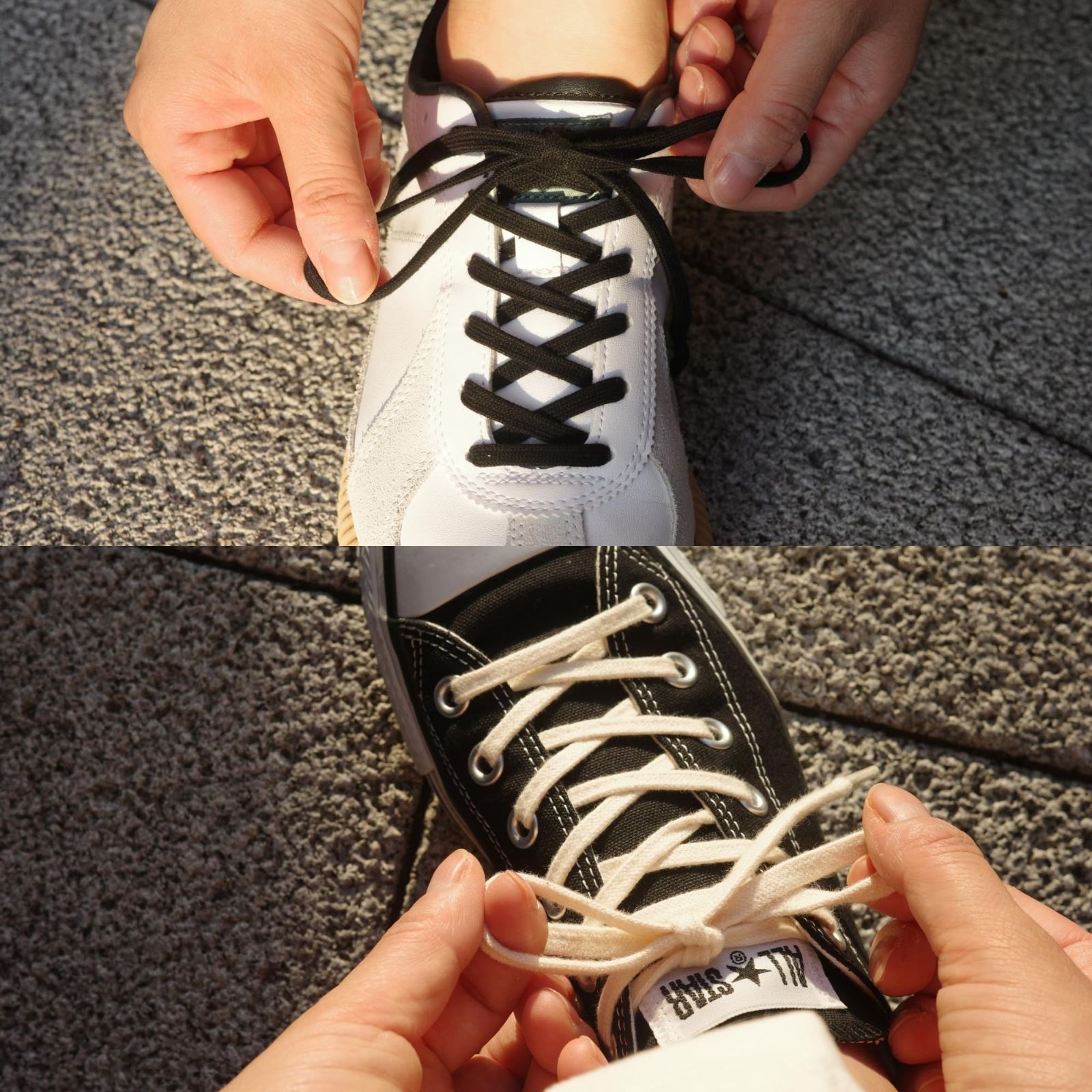 結んだ時の見た目が上品で、キレイめのスニーカーと相性抜群です。