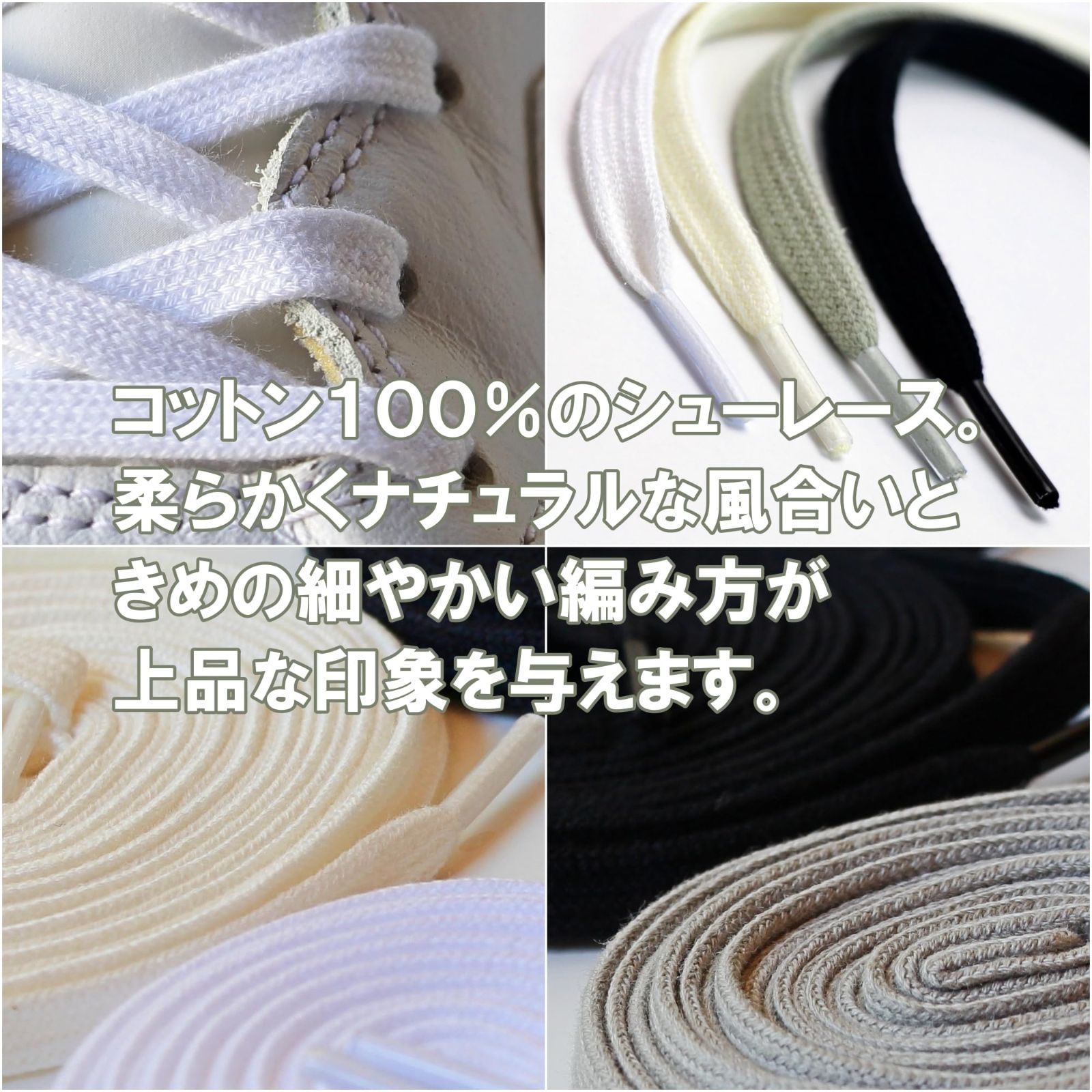 糸を細かく編み込み、細めに仕上げたコットン100%のスニーカー用シューレースです。