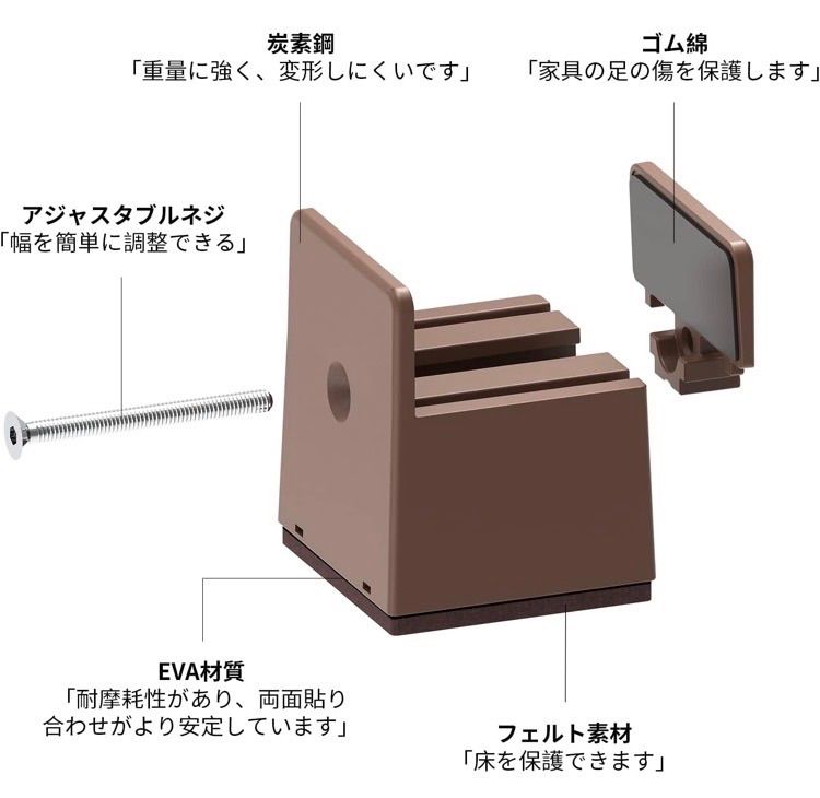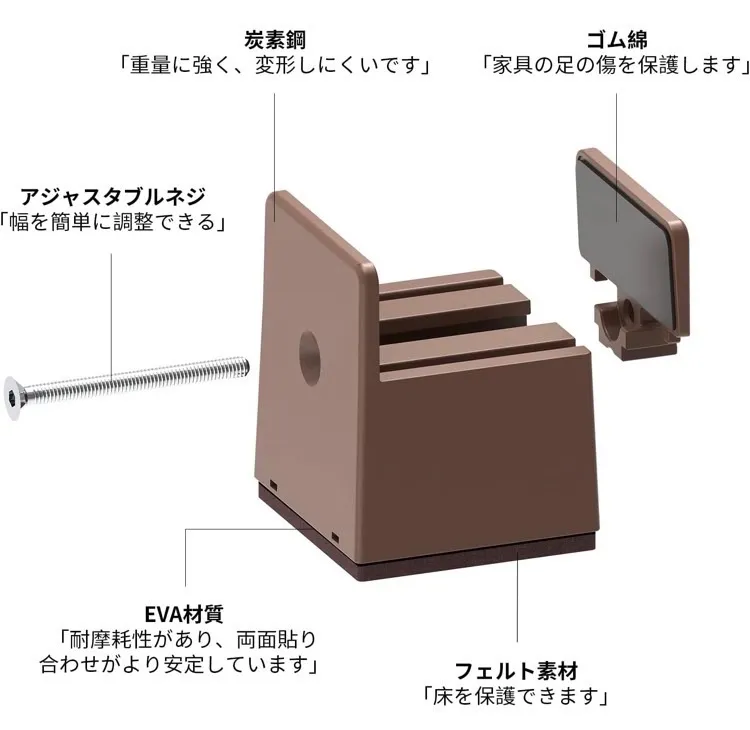 【継ぎ脚が滑らず】底部にはフェルト素材を使用しました。フェルトは防音性と滑り止め性に優れている。家具を運ぶときに床が損なわれる心配は全くありません。