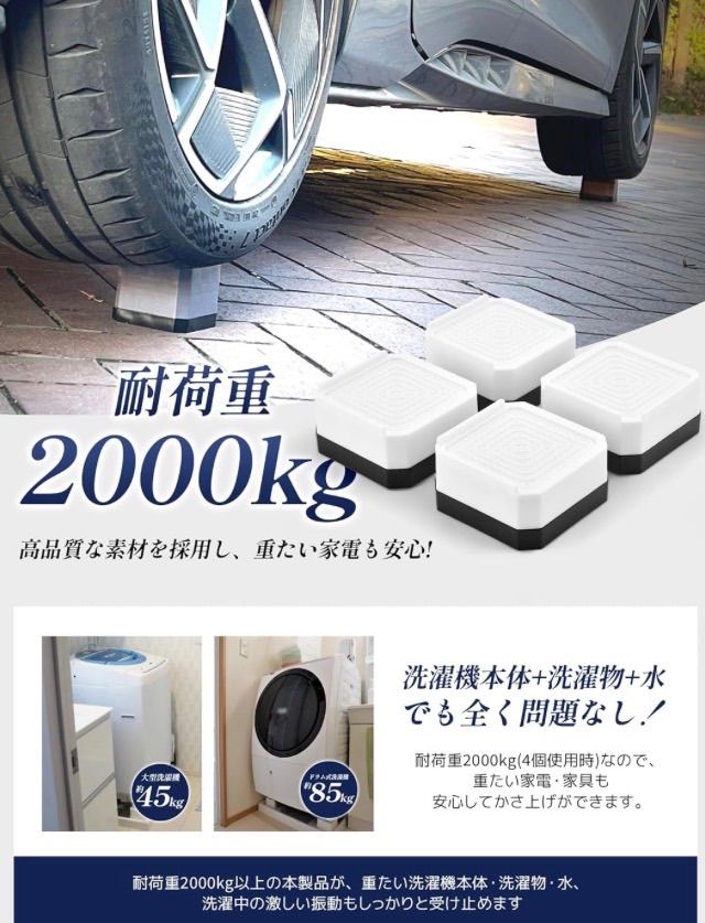 洗濯機用防振かさ上げ台 高さ調節 洗濯機・乾燥機・冷蔵庫用置き台 取り外し可能 家具に傷防止 滑り止め 床に傷防止 耐荷重約2000kg 異音吸収 振動吸収