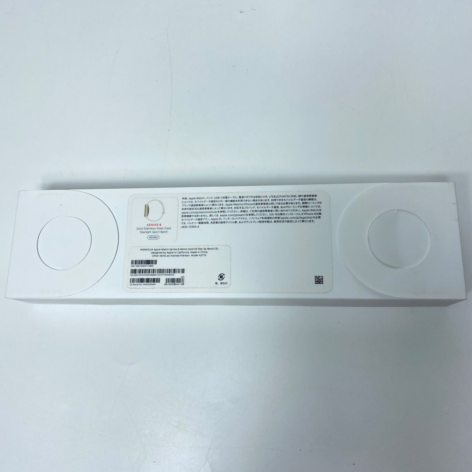 【未開封・保証付】MNKM3J/A Apple Watch Series 8(GPS + Cellularモデル)- 45mmゴールドステンレススチールケースとスターライトスポーツバンド