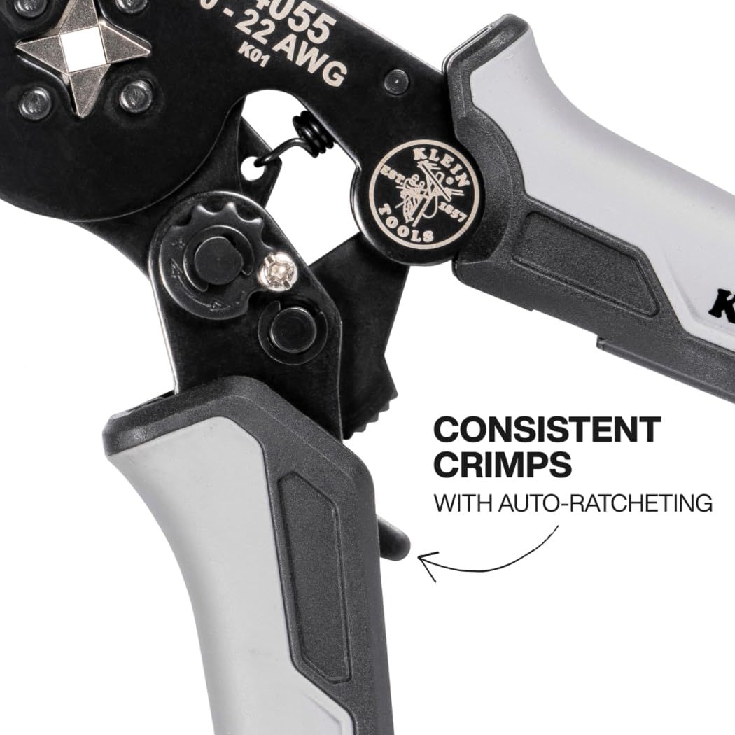 Klein Tools 34055 フェルール圧着工具 角型クリンパープライヤー 10~22AWGワイヤー端子用 調節可能なラチェット内蔵 電気工事用