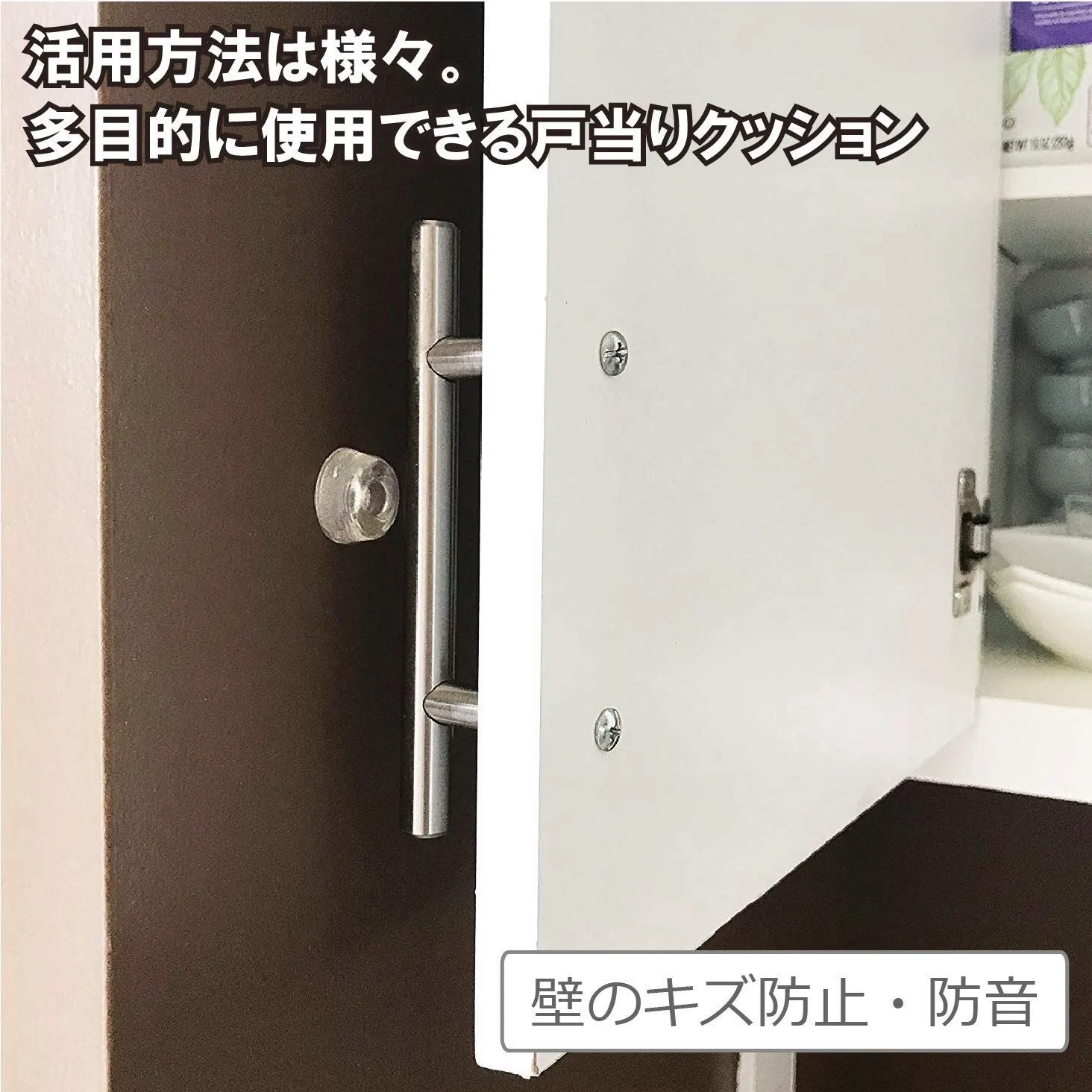 【家具・家電の保護】ドアストッパー・壁のキズ防止・衝撃音などの防音騒音対策・精密機器の耐震対策・戸当り対策・お掃除ロボットの衝突対策等、アイデア次第で色々な使い方が可能なシリコンクッション。