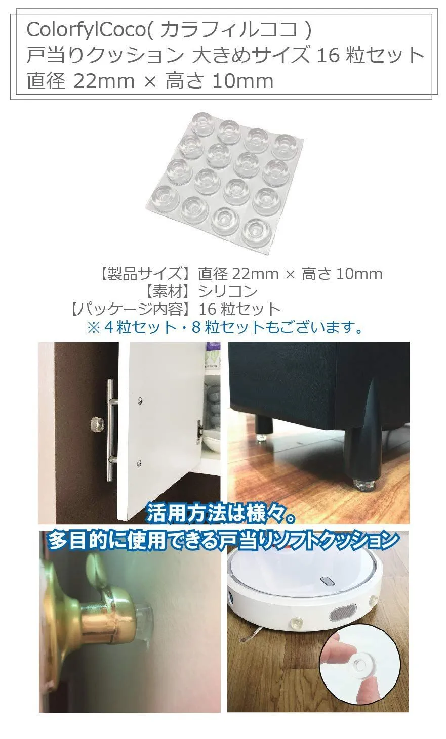 新品 ColorfylCoco 戸当りクッション 戸当りゴム ゴム足 大 円形 16個セット 直径 22mm × 高さ 10mm 透明 クリアー 大きいソフトクッション 滑り止め (16粒セット)