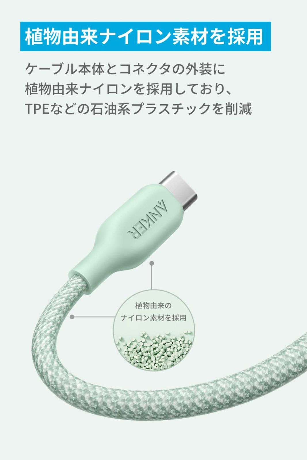 Anker 541 エコフレンドリーナイロン USB-C & ライトニング ケーブル 高耐久ナイロン MFi認証 植物由来素材 急速充電 環境配慮 iPhone 14 / 14 Pro Max / 14 Plus / 13 / 13 Pro / 12 / 11 / X/XS/XR / 8 Plus 各種対応 (1.8m グリーン)