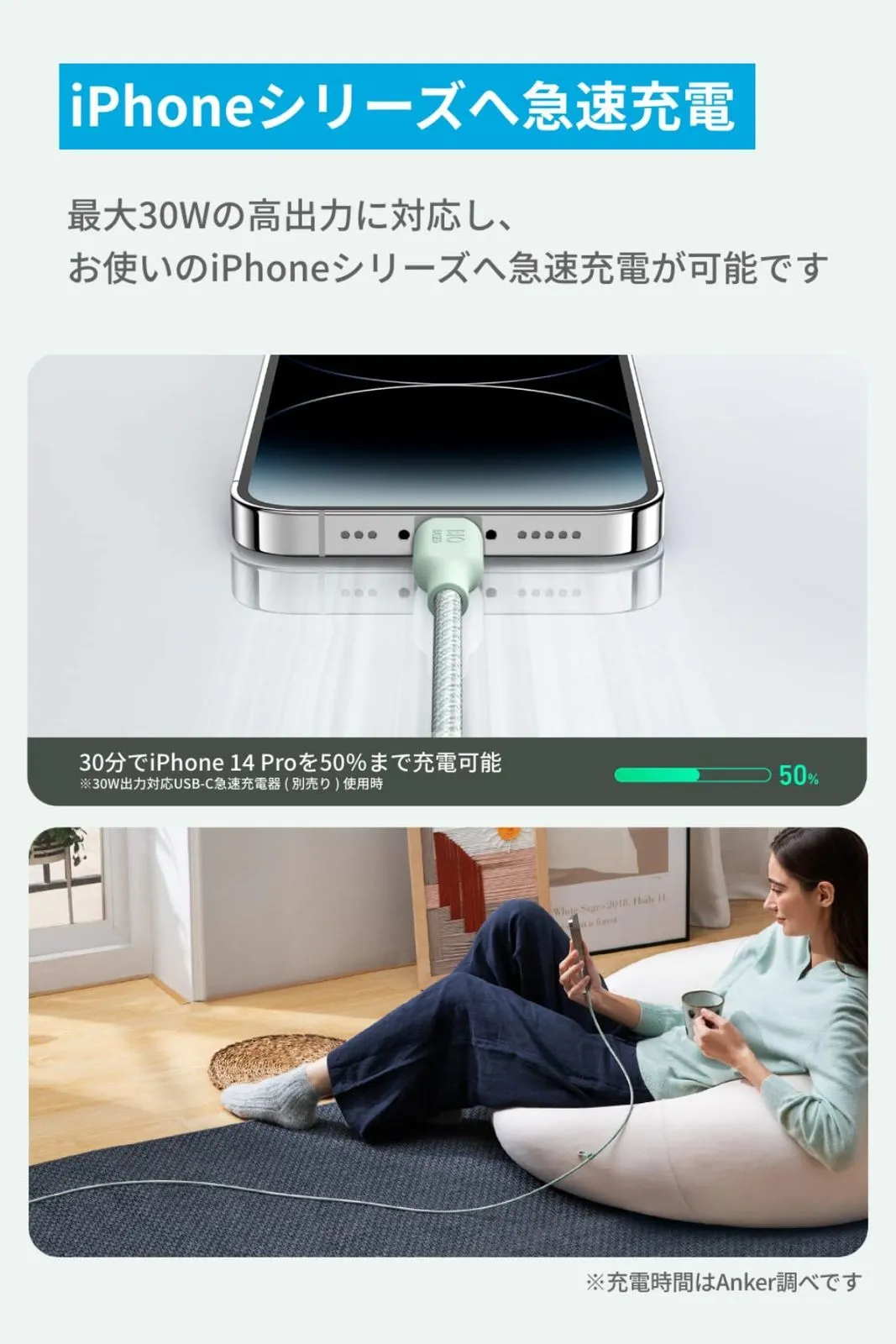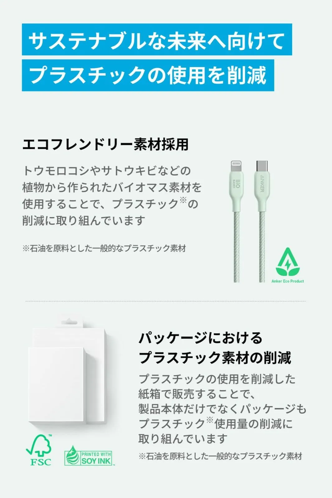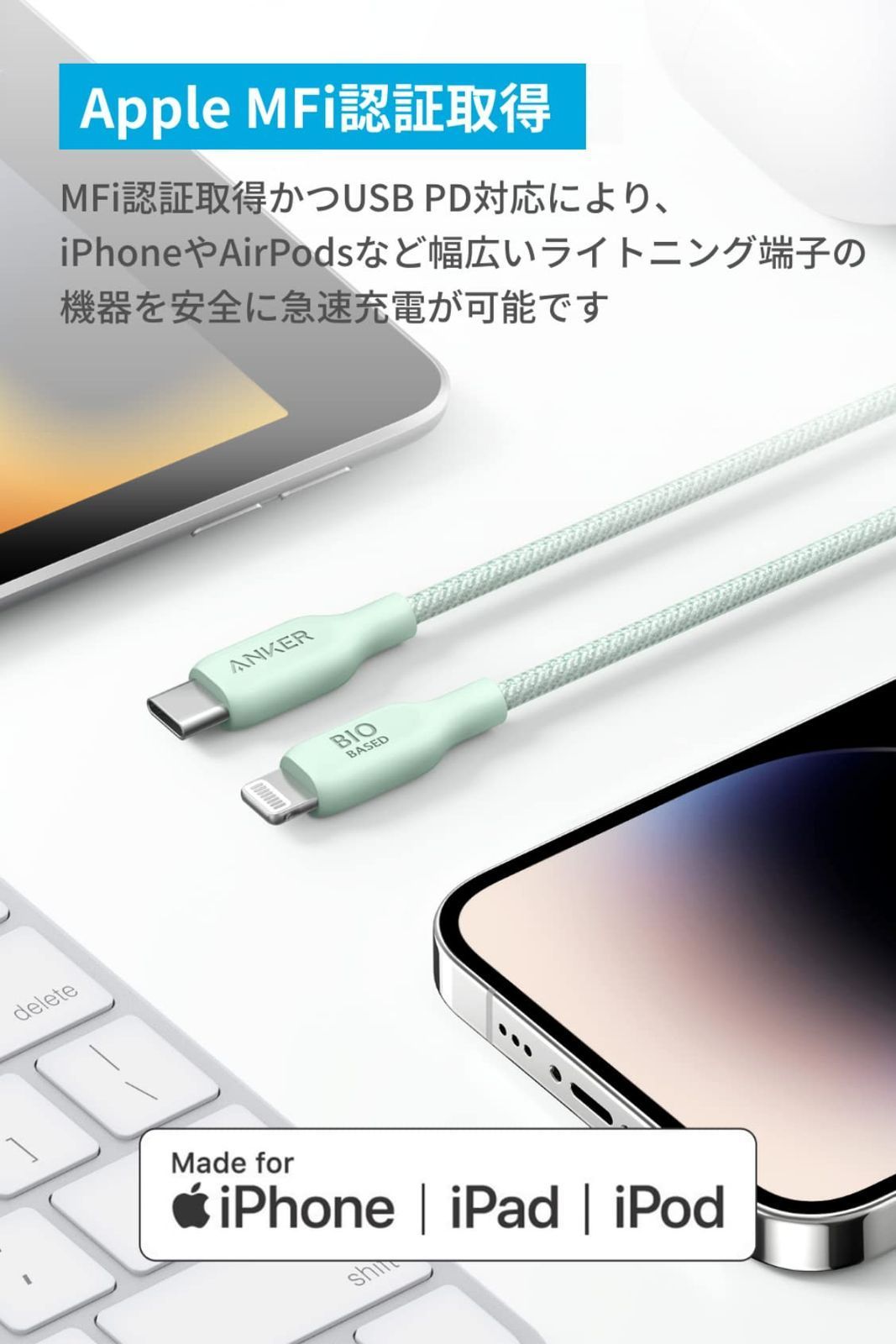 新品 Anker 541 エコフレンドリーナイロン USB-C & ライトニング ケーブル 高耐久ナイロン MFi認証 植物由来素材 急速充電 環境配慮 iPhone 14 / 14 Pro Max / 14 Plus / 13 / 13 Pro / 12 /