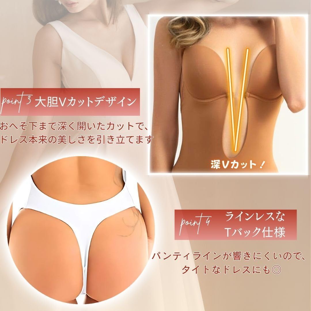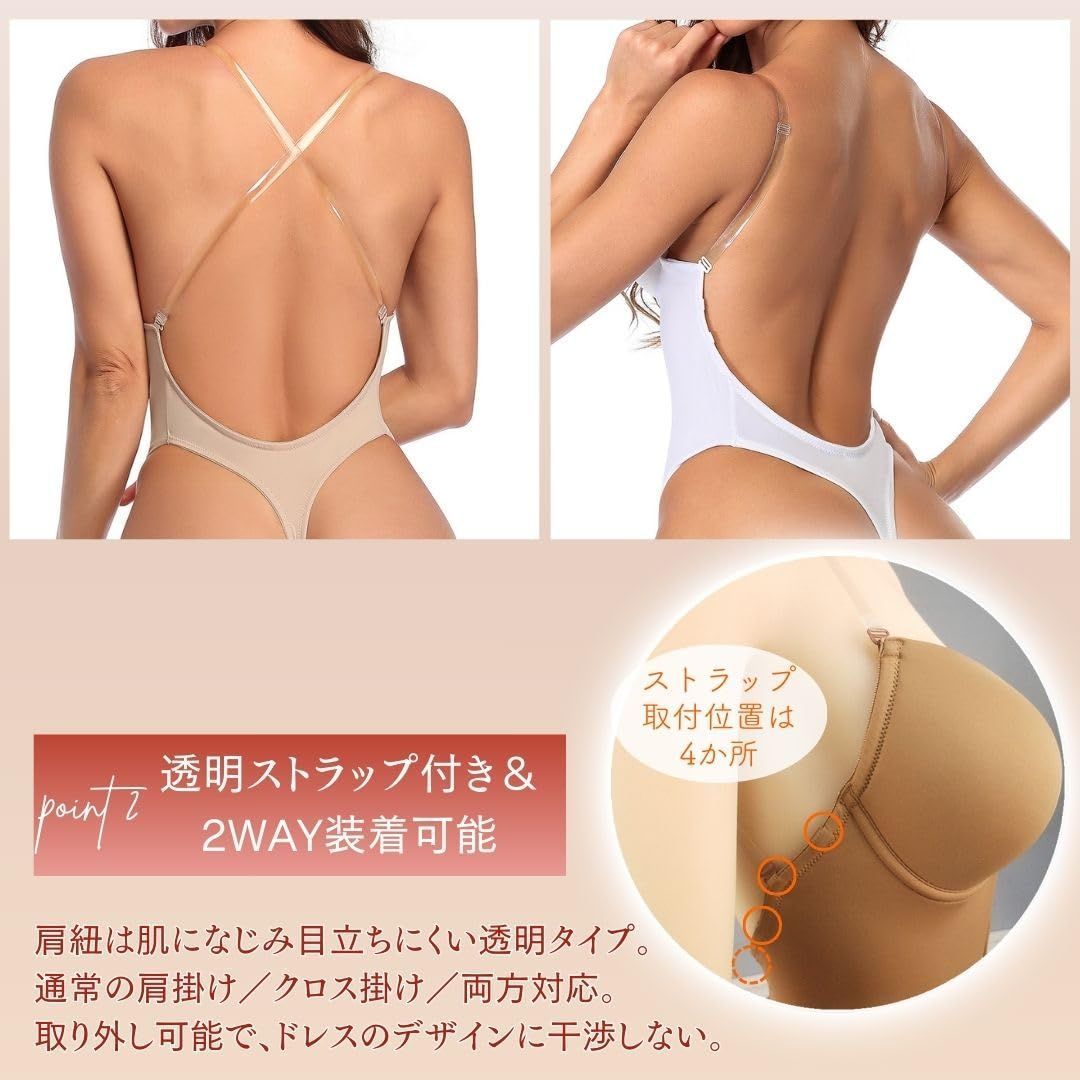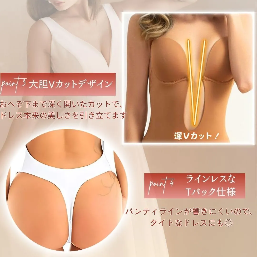 背中の大きくあいたドレス用のインナーです。レオタードだから激しい動きにもズレることなく身体にフィット。 後ろはTバックタイプでピタッとしたドレスでも下着のラインを見せません。