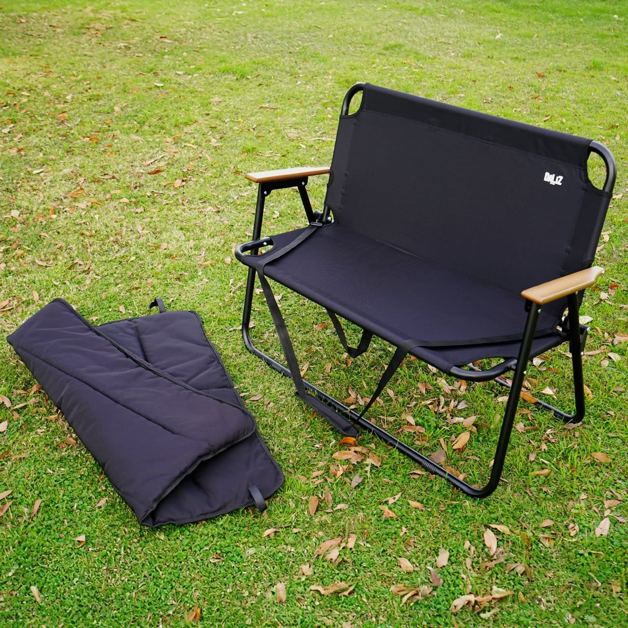 折りたたみ時のサイズは約W110×D12×H72cmとコンパクト、ショルダーベルト付きなのでアウトドアやキャンプ、ピクニックなどの外出時も楽々持ち運び可能です。