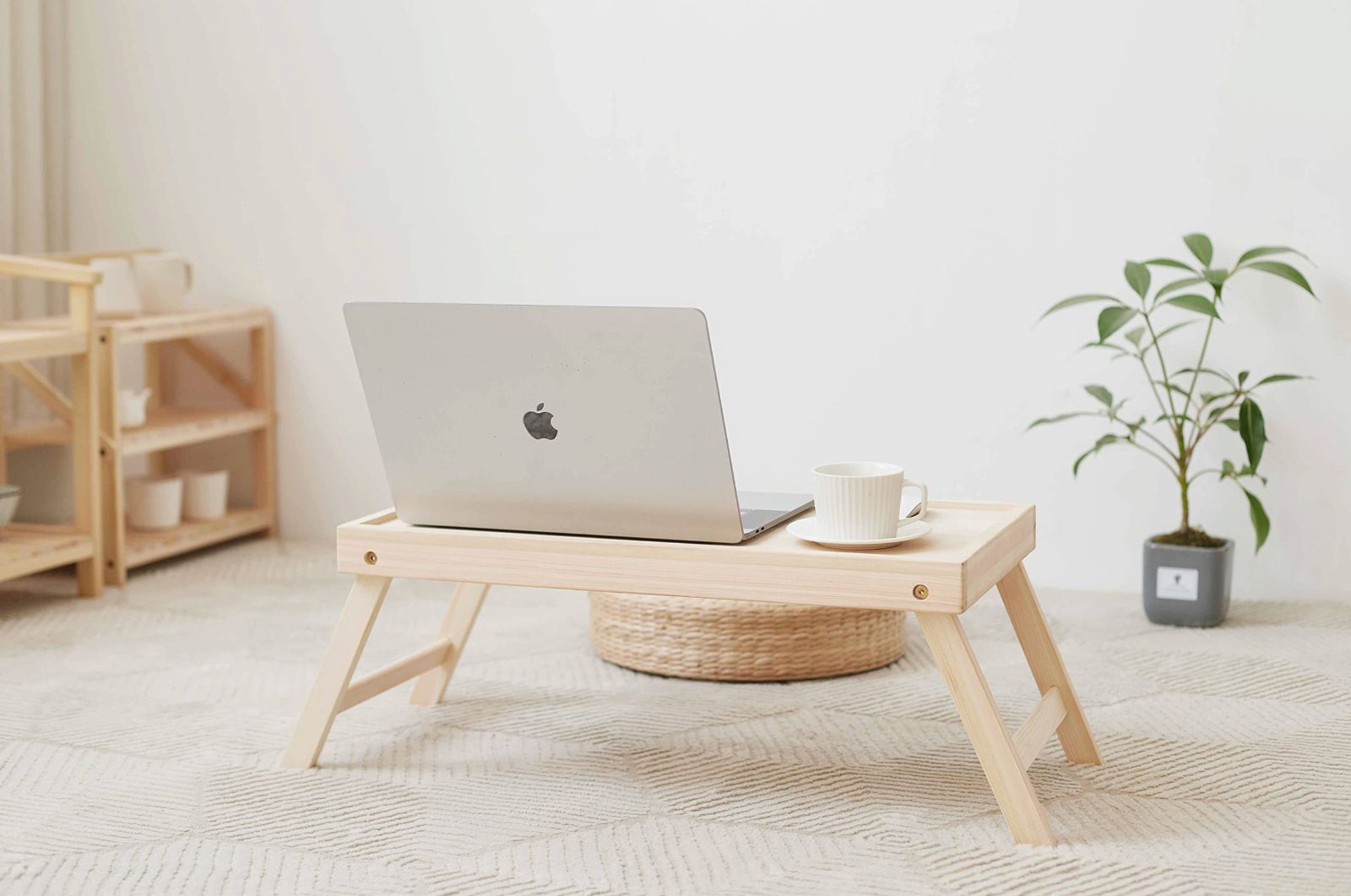 仕様: 本体サイズ: 幅59×奥行32×高さ26cm 本体重量: 1.39kg 耐荷重: 10kg 脚部とデスクトップの角度は120度を設定するため、安定性は抜群です