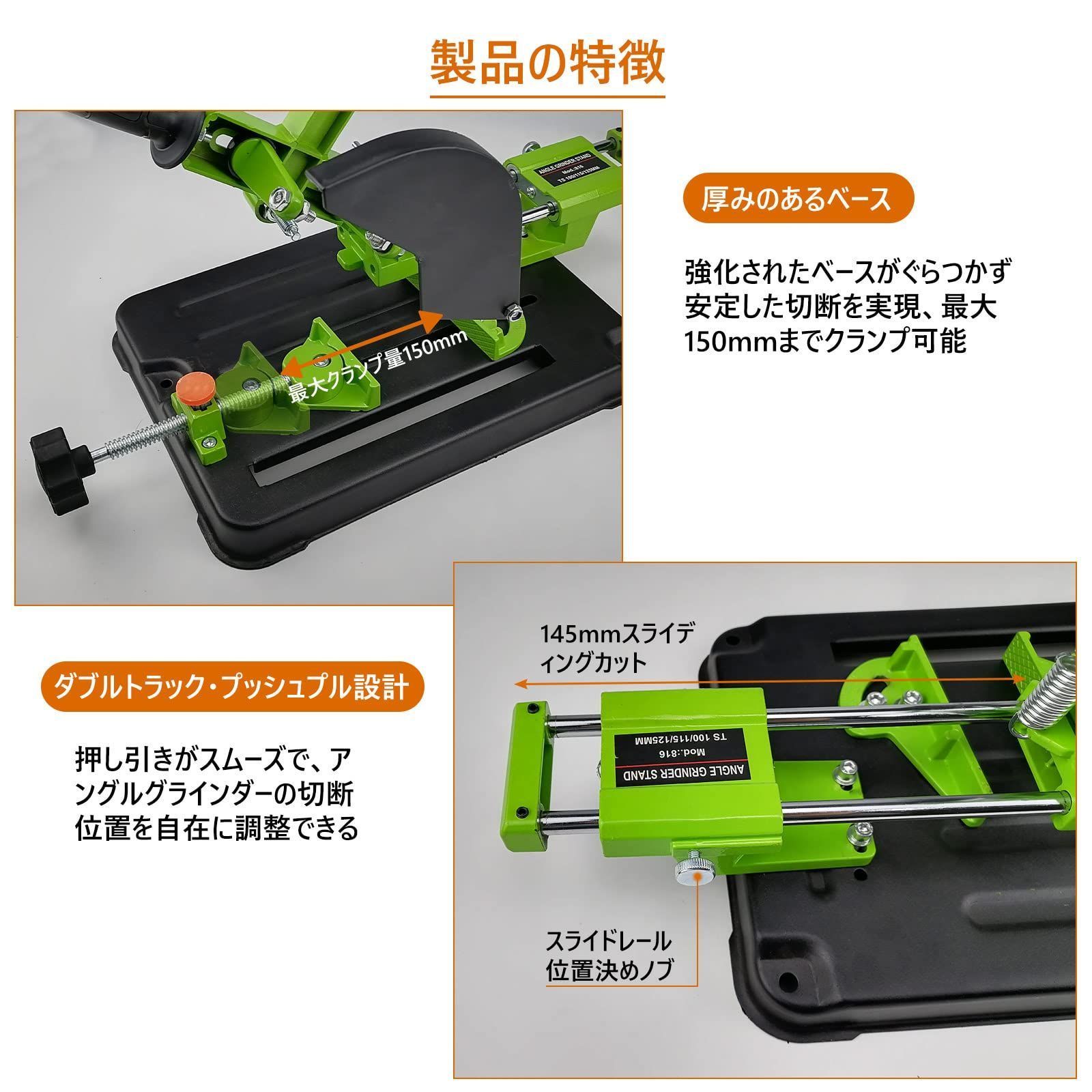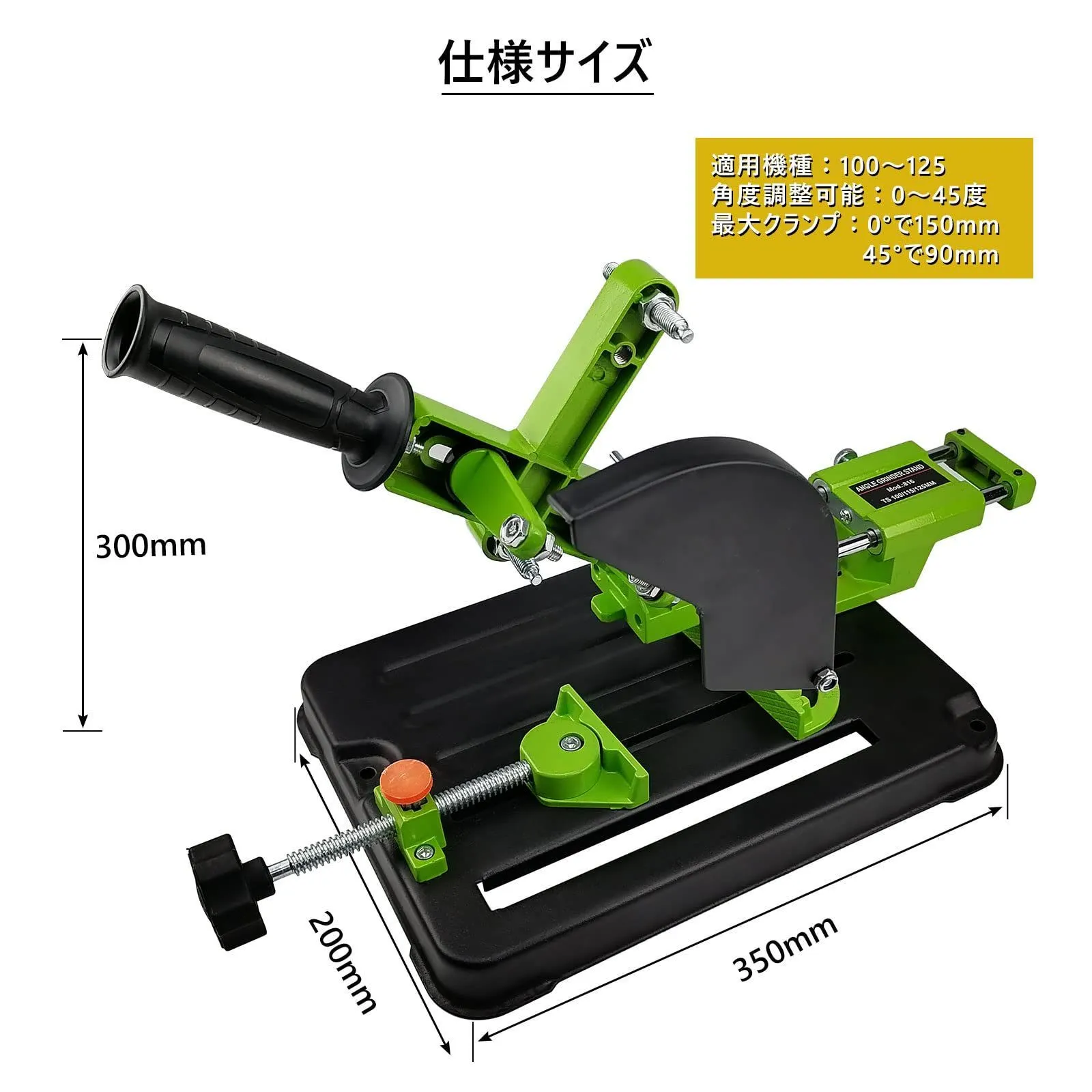 ディスクグラインダースタンド 45度調整 100mm 115mm 125mm 金属加工 家庭用 DIY 切断幅150mm