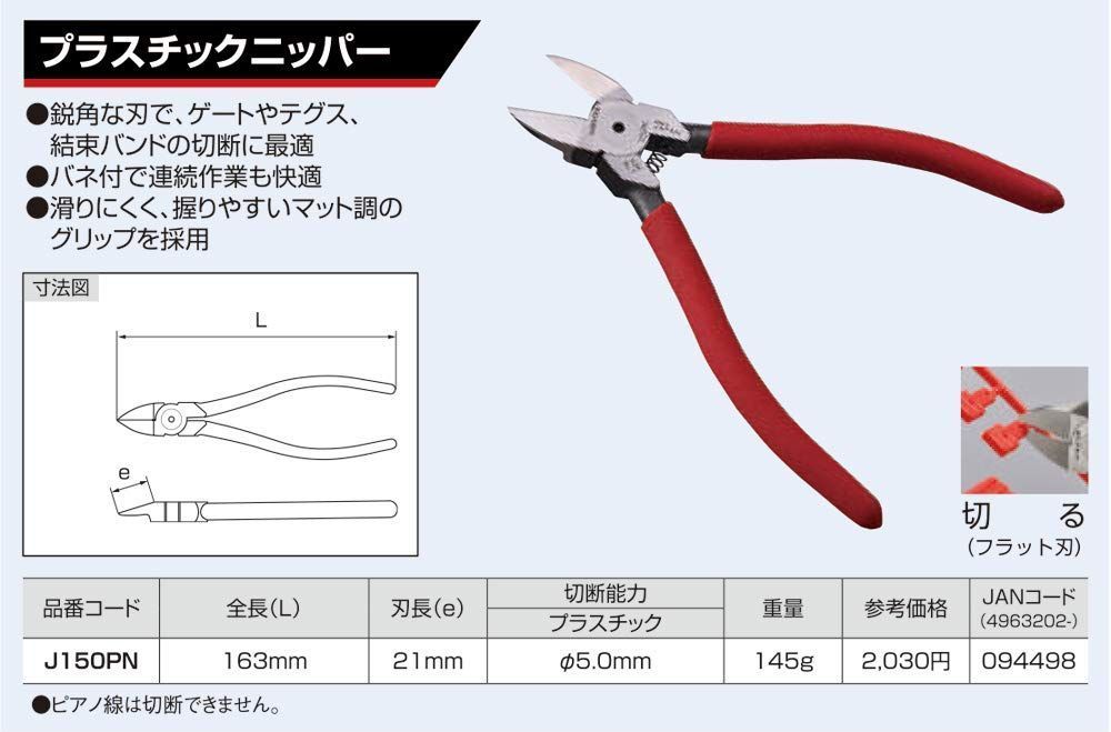 新品 ロブテックス プラスチックニッパー J150PN J150PN