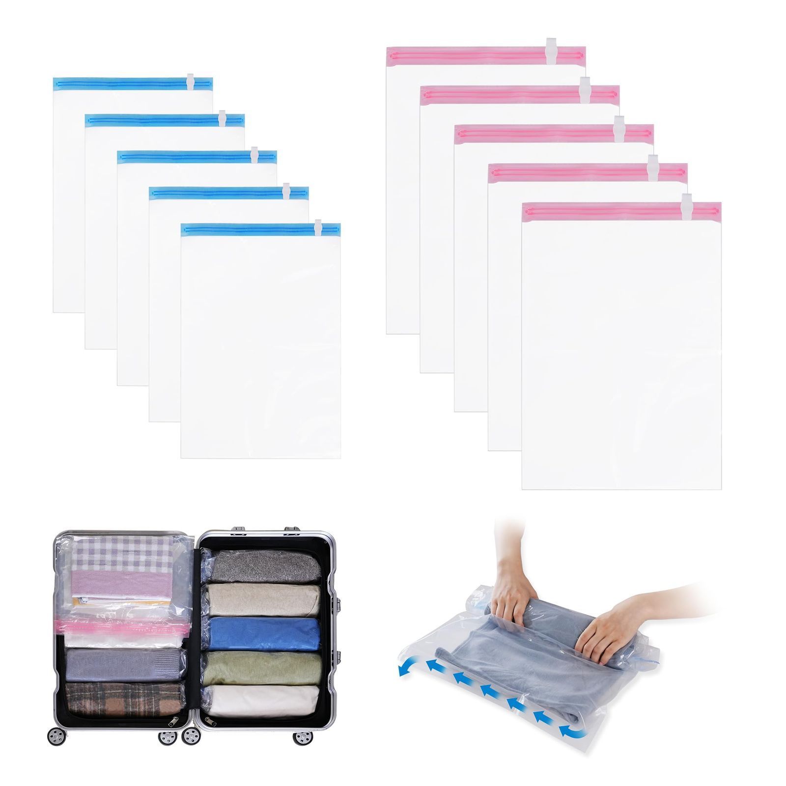 新品 圧縮袋 旅行 衣類圧縮袋 10枚入 約80%圧縮 真空あっしゅく袋 洋服 掃除機不要 手巻き 防カビ 防虫 衣替え 収納 トラベル 出張 引っ越し 家庭用 再利用可能 旅行便利グッズ 32*39cm(5枚)+35*50cm(5枚)