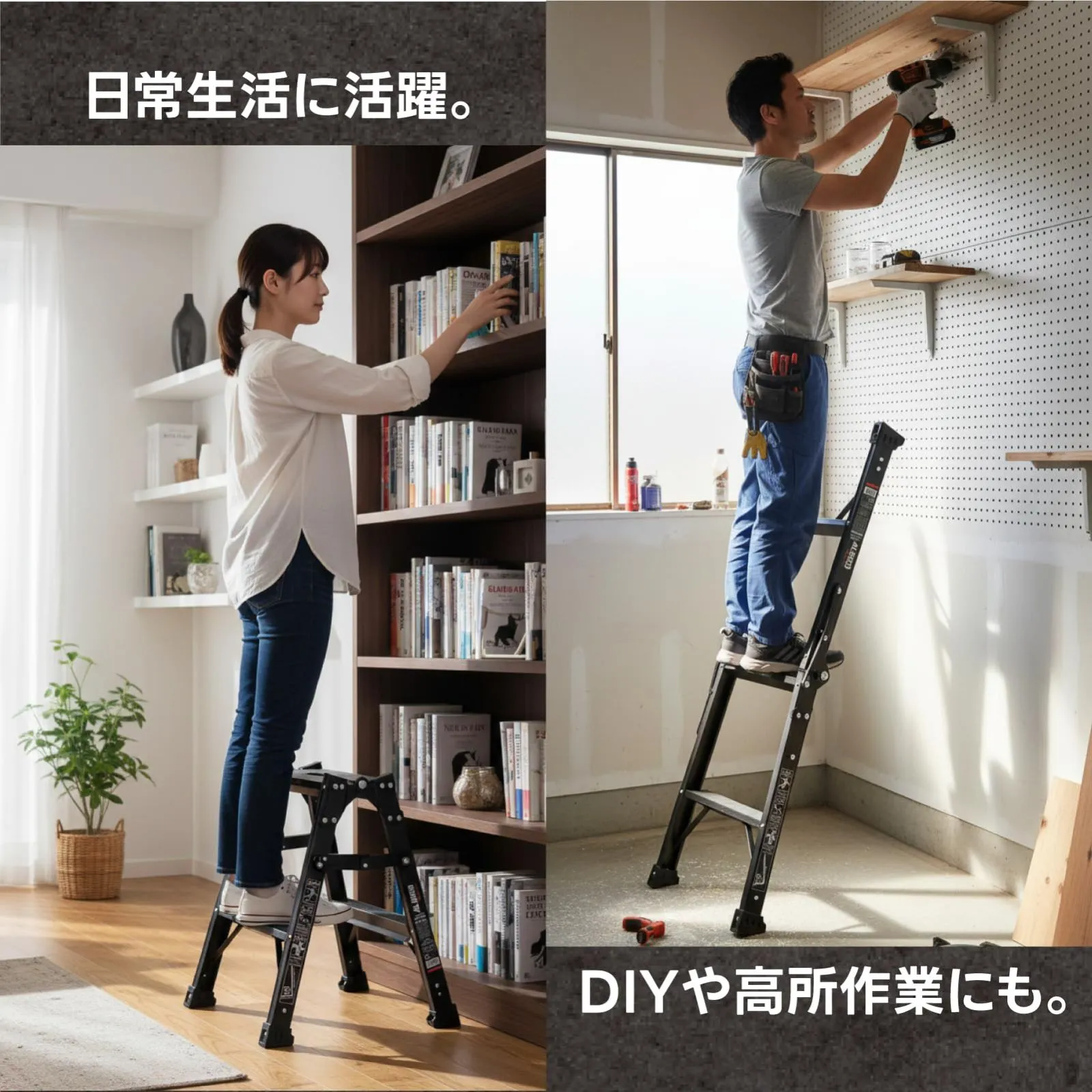 【2WAY仕様】脚立としても、はしごとしても使える兼用設計。洗車や高所作業に便利。 ・