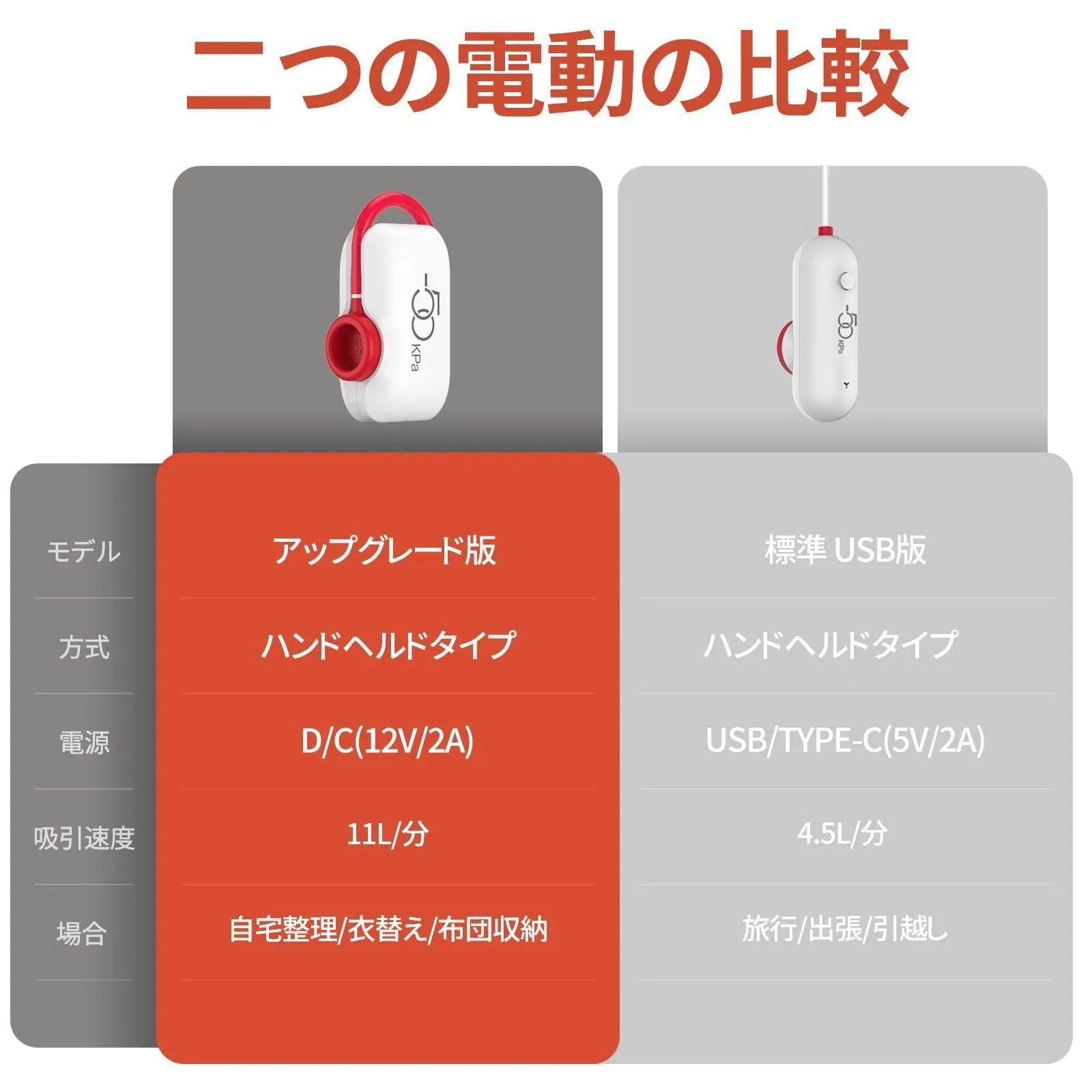 【-50Kpa 最大圧縮】30秒以内で素早く真空にし、最大-50KPaの真空レベルと11L/分を超える排気量で効果的に空気を排出します、延長された真空チューブにより、パッキング作業が非常に簡単になります。