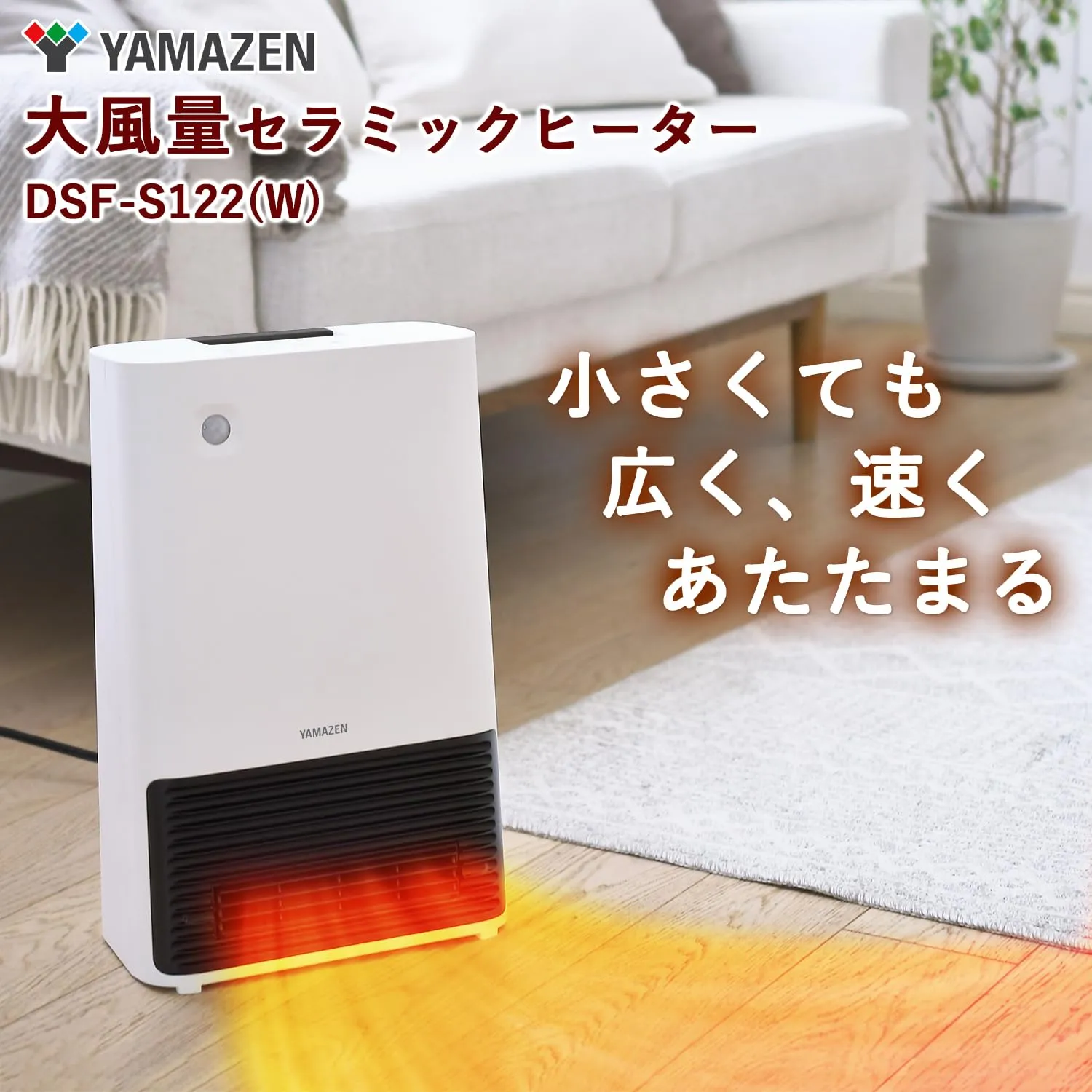 [山善] 大風量 セラミックヒーター 人感センサー 省エネ タイマー付き 1200W 温風2段階切替 チャイルドロック機能 足元 トイレ 脱衣所 ホワイト DSF-S122(W) [2)[大風量]人感センサー付き/ホワイト]