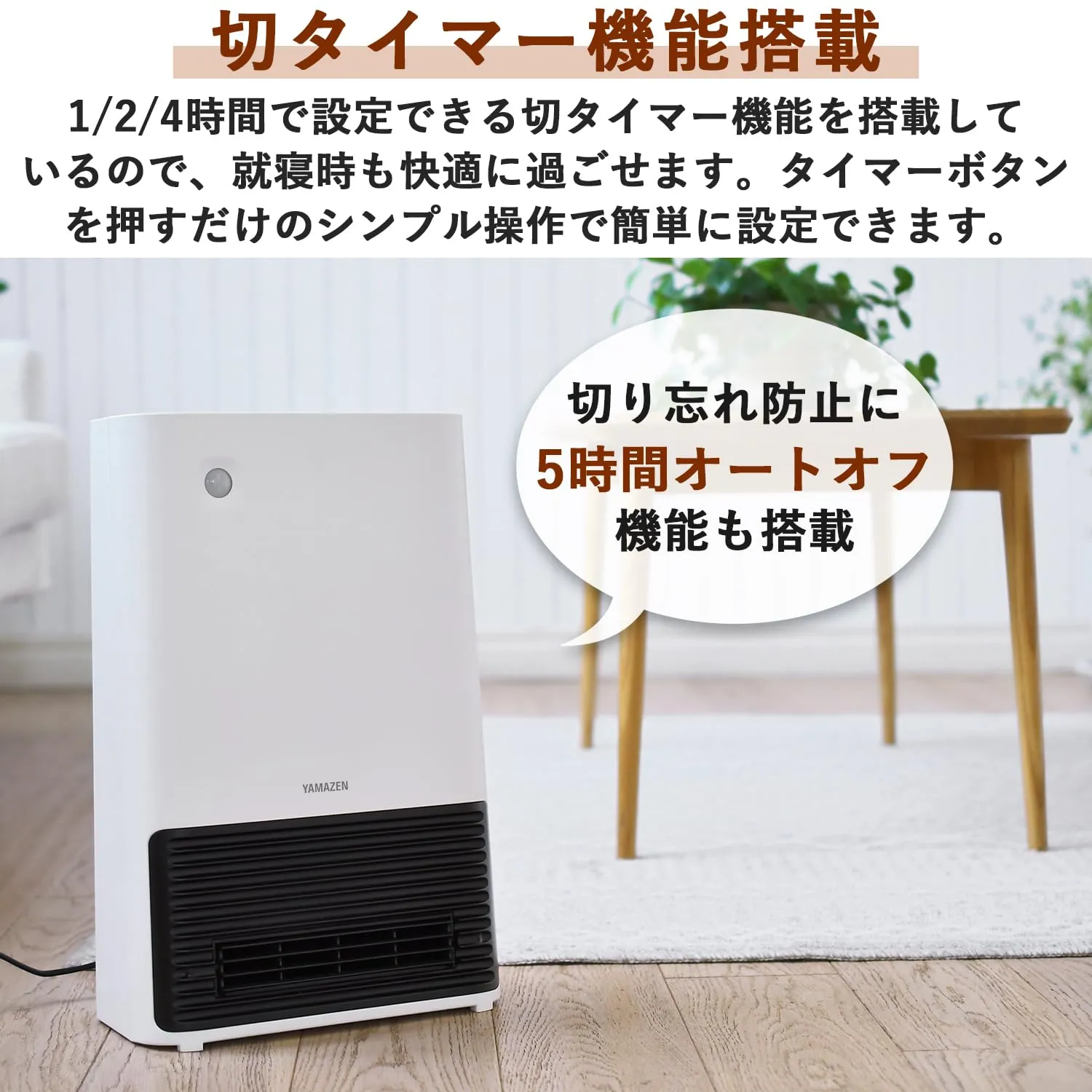 【タイマー】設定した時間に自動で電源オフになる切タイマー搭載。1/2/4時間で設定でき、就寝時や切り忘れ防止にも役立ちます。