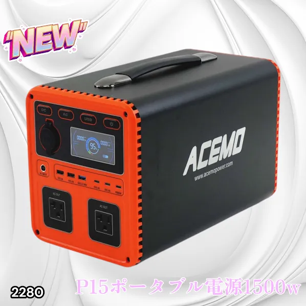 #2280 P15 ポータブル 電源 オレンジ 1500W 災害 緊急時 アウトドア 停電 キャンプ 持ち運び 大容量 ※北海道、沖縄本島、沖縄の離島、その他離島へは別途配送料有り