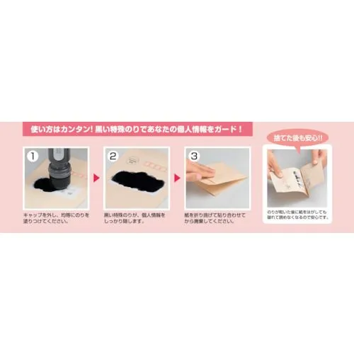 ●ハガキや封筒、明細書などの宛名や住所を黒いのりで塗って貼り合わせるだけです。