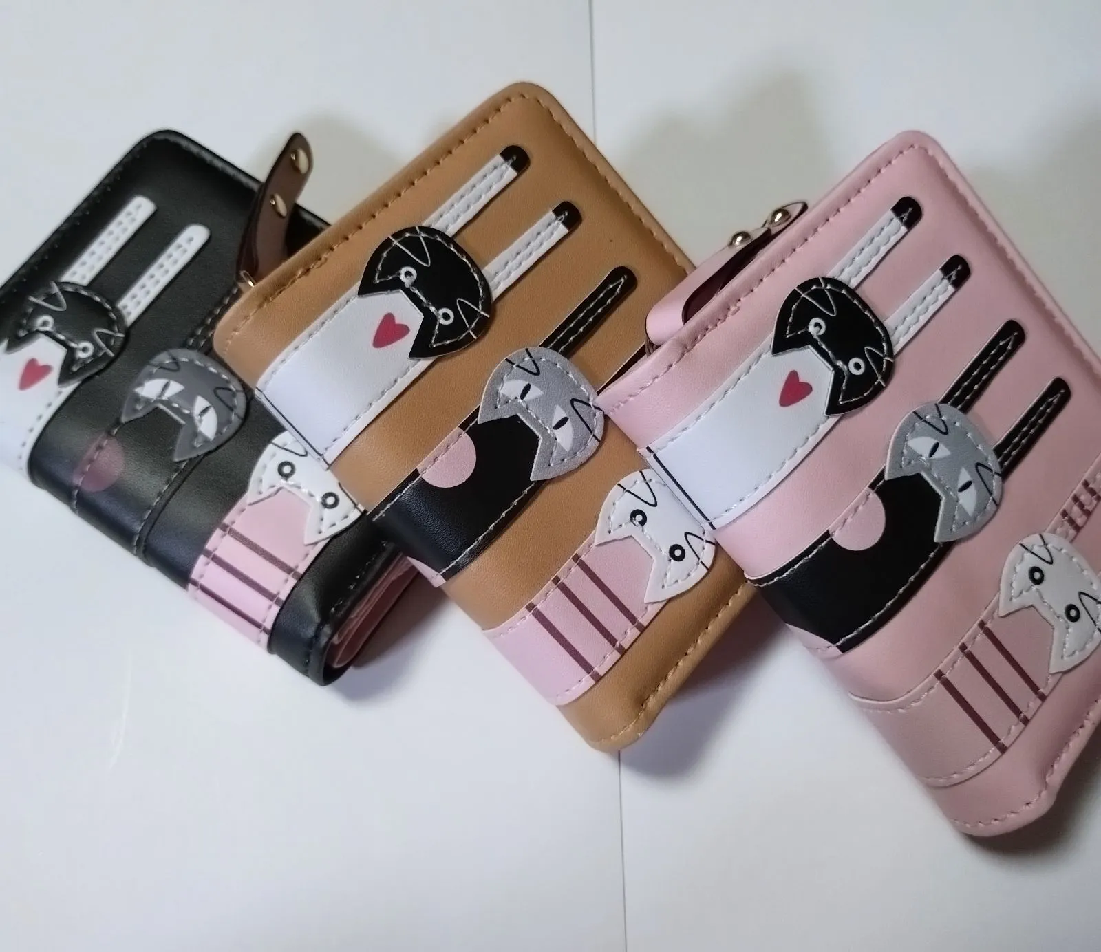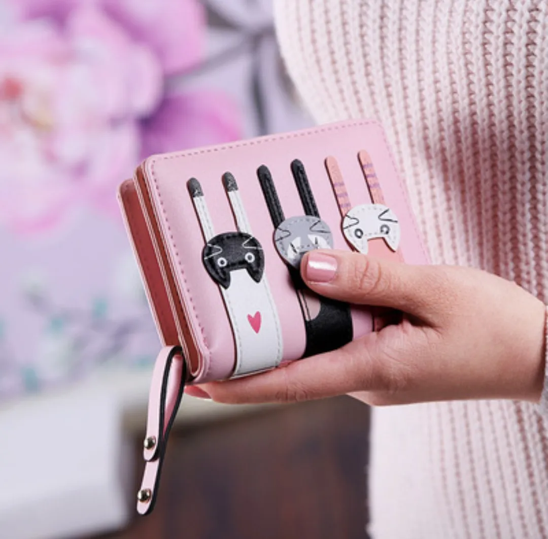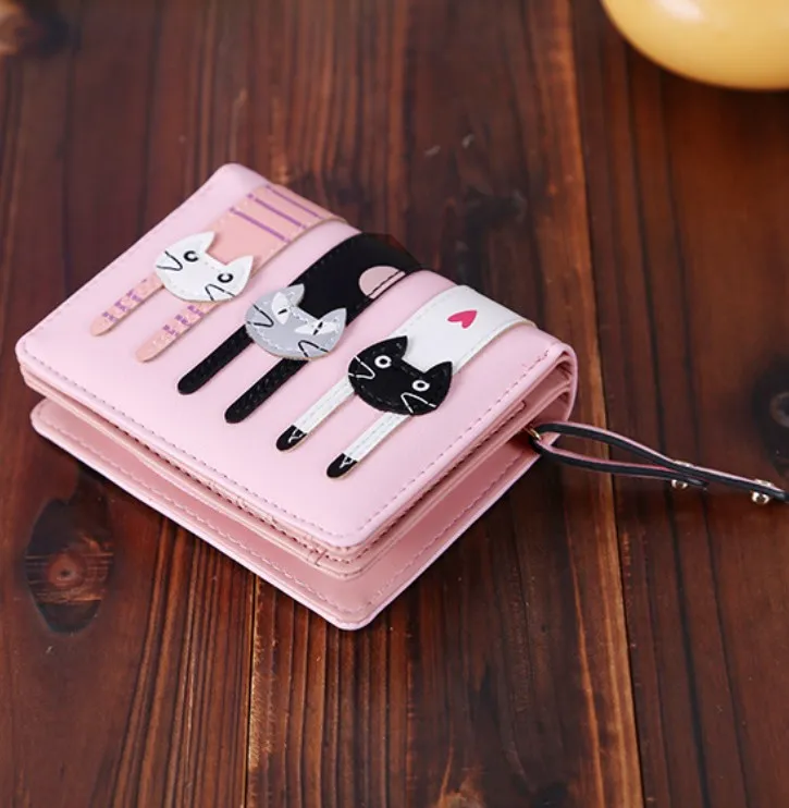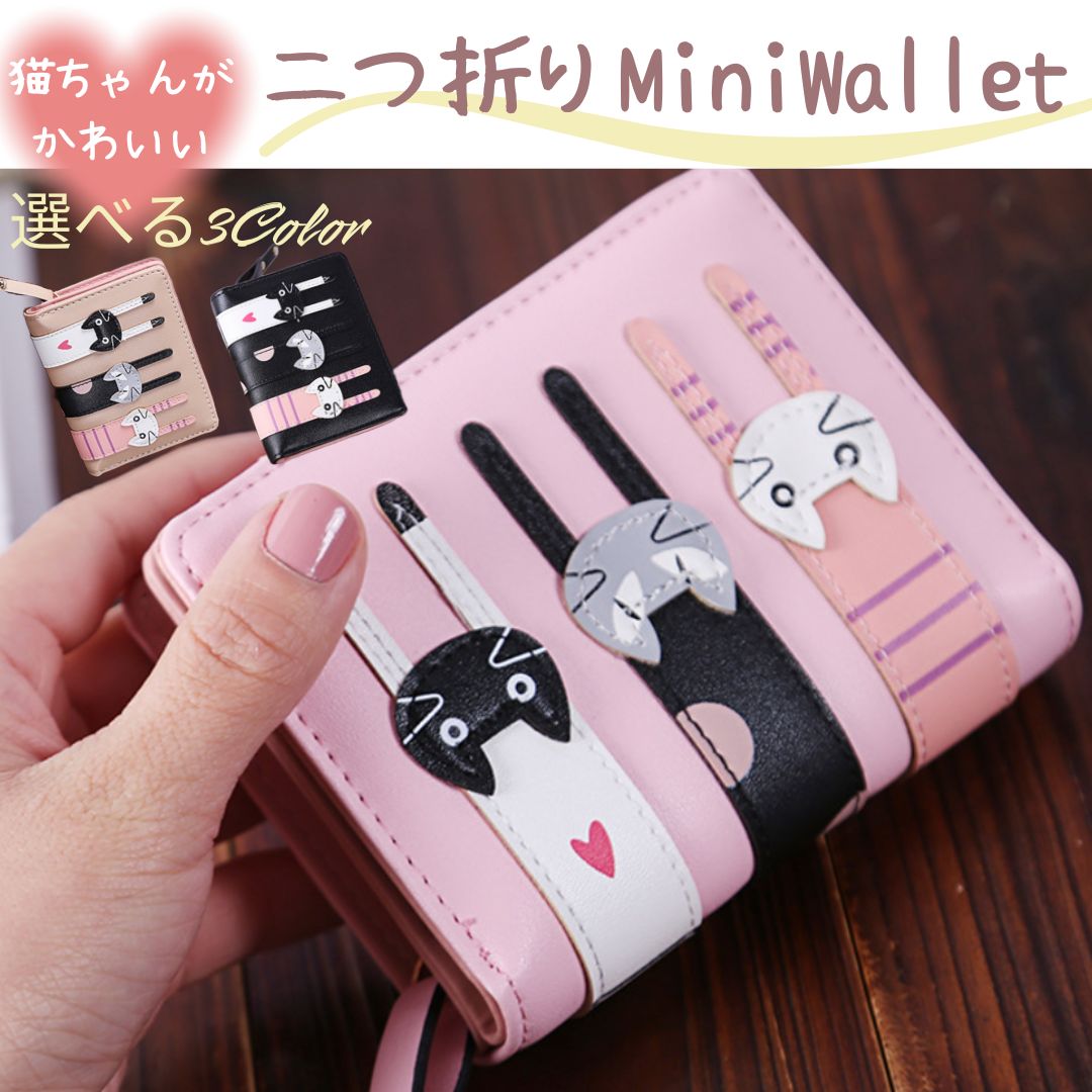 猫 財布 折り財布 ブラック&ピンク ねこ ネコ ミニ財布二つ折り