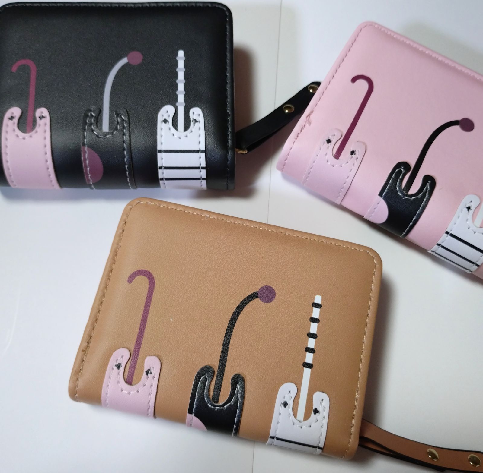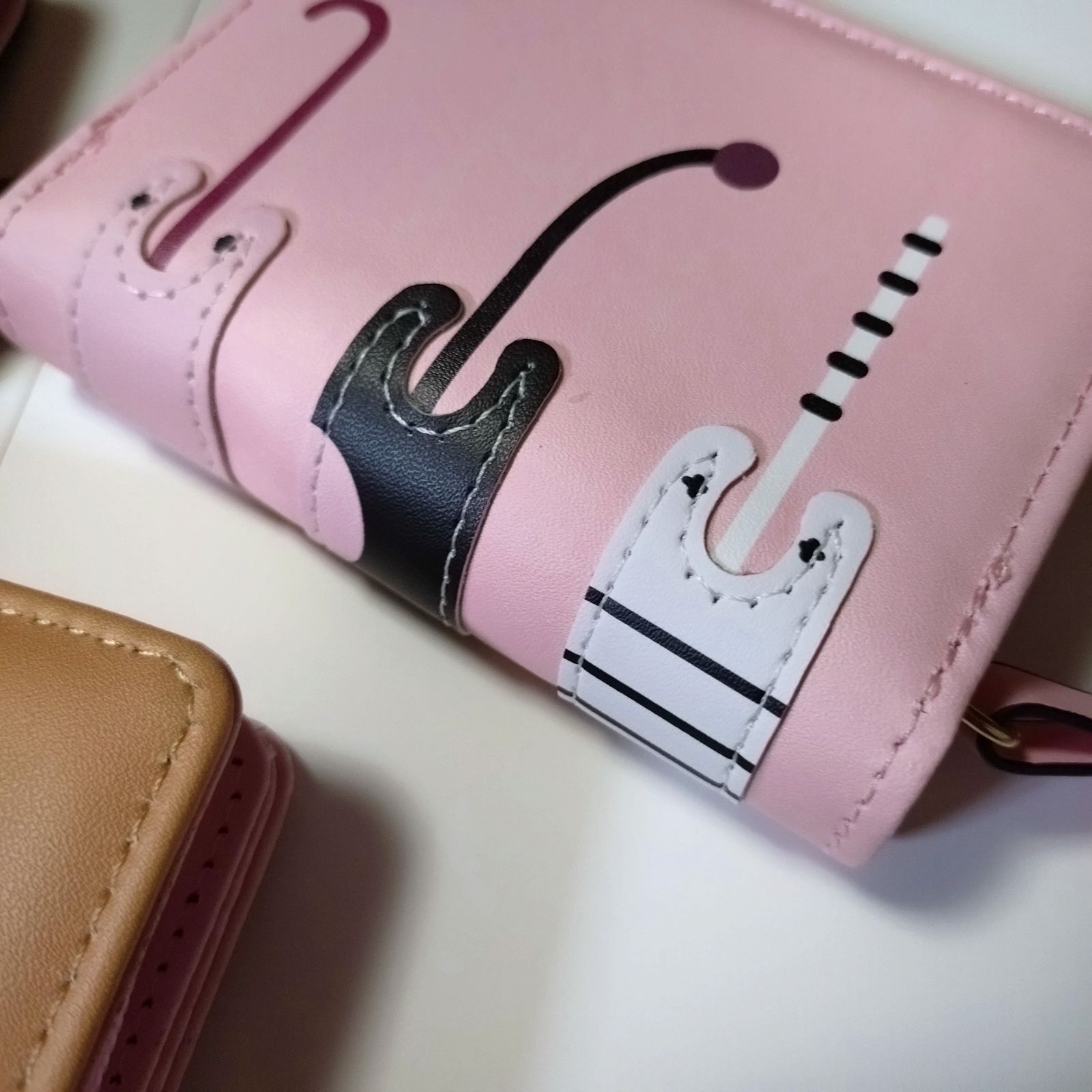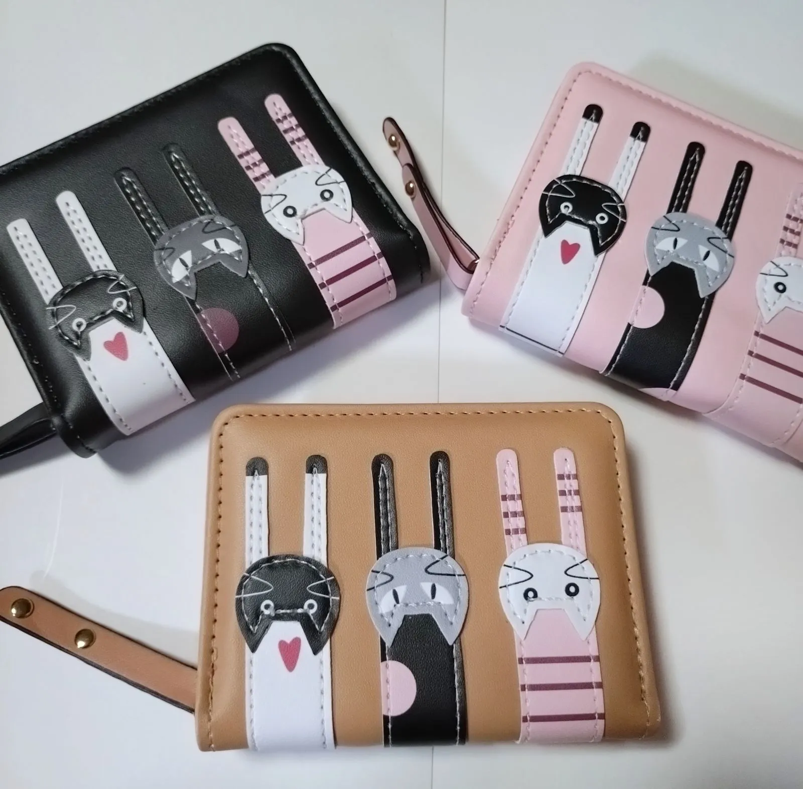 猫 財布 折り財布 ブラック&ピンク ねこ ネコ ミニ財布二つ折り