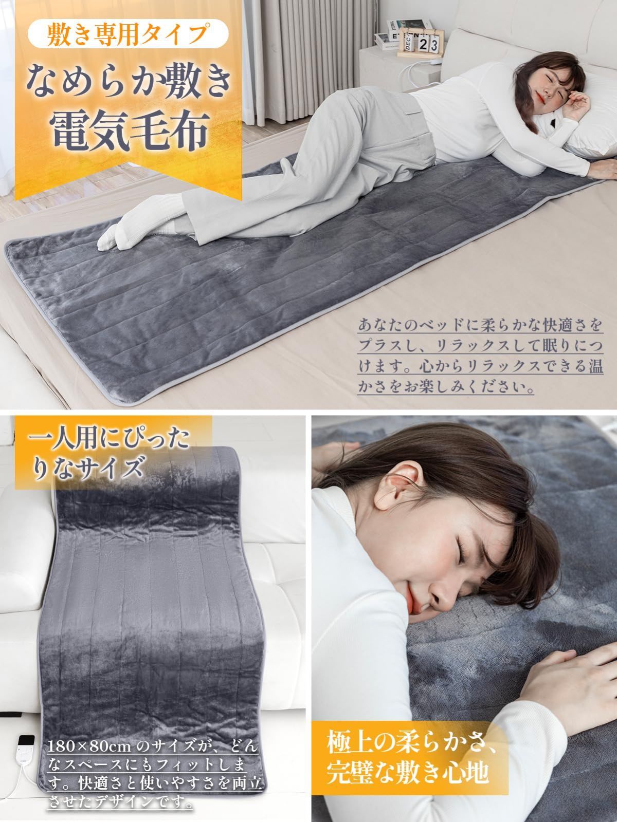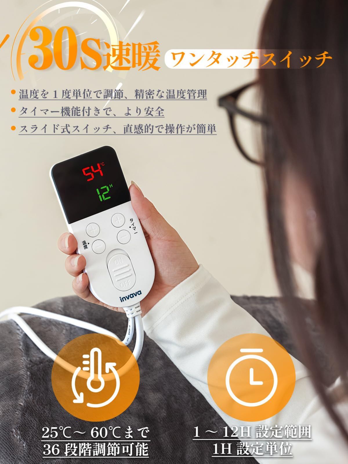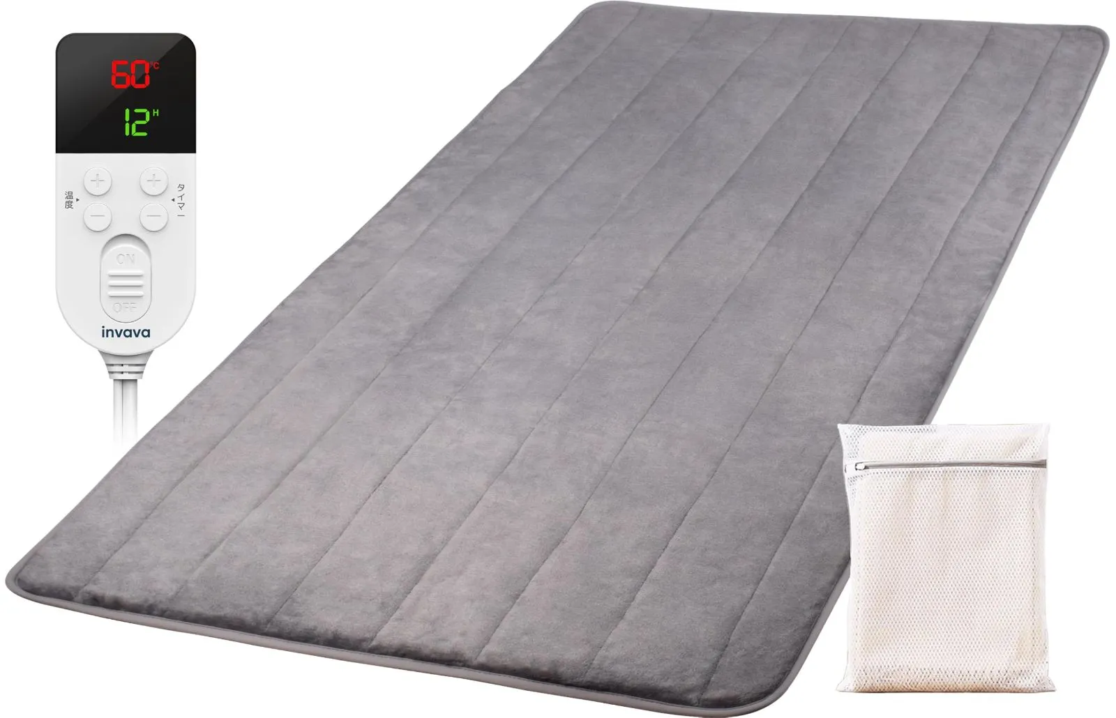 【冬】invava 180×80cm 電気カーペット 1畳 サイズ 洗える 電気毛布 敷き シングル用【25~60℃までフリー温度調節、1~12時間タイマー付き】ホットカーペット兼用 一人暮らし 省エネ 切り忘れ防止タイマー 丸洗い可 洗濯ネット付き グレー