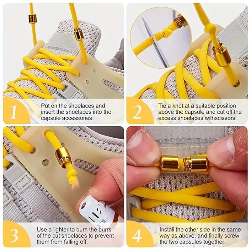 【数量限定】弾性ネクタイなし靴ひも 大人、子供、高齢者用、弾性靴ひも付きシステム [Boolavard] (2ペア)