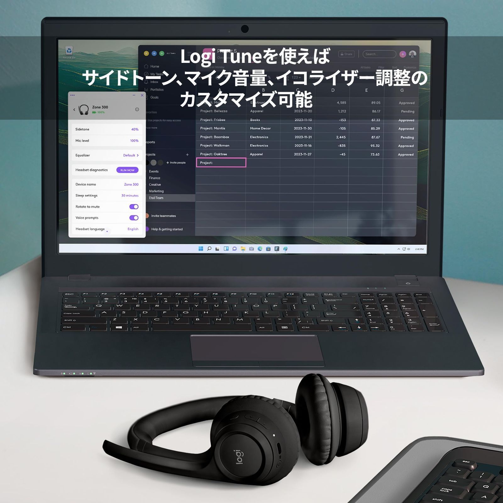無料アプリケーションLogi Tuneを使えばサイドトーン、マイク音量、イコライザー調整のカスタマイズが可能